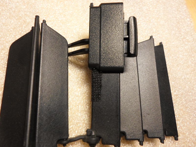 Есть у козырька ось, на которой он крепится и вращается. У меня на пвссажирском она прослабла и на гребенке (а ее, в ЯМОславле у нас до х...,