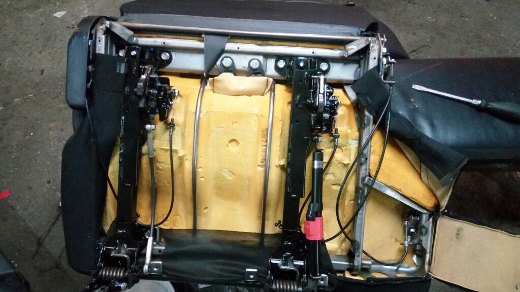Обивка сиденья снимается элементарно, надо просто открутить винт ручки наклона спинки, открыть молнии и окуратно снимать