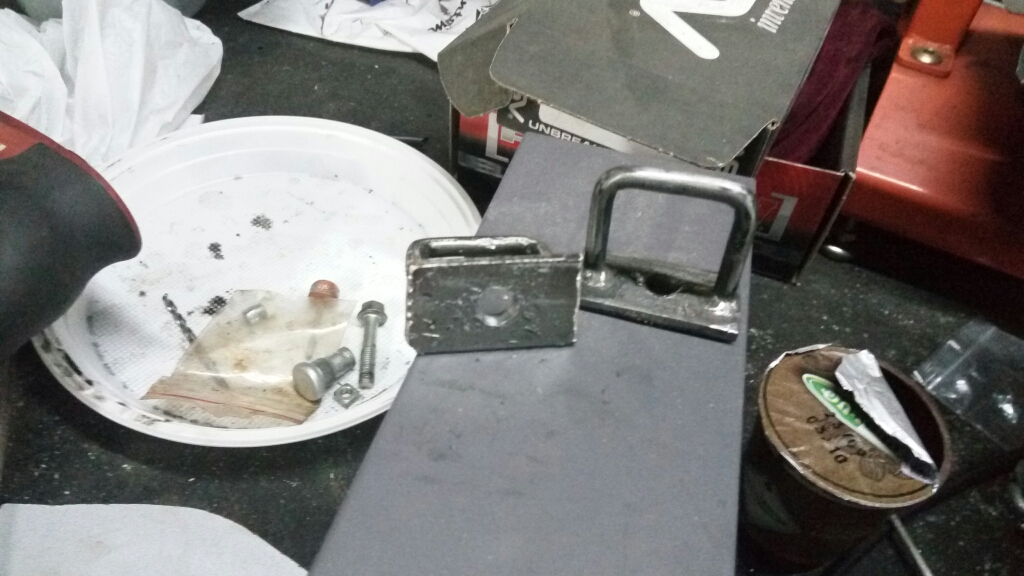 Кронштейны изготовил из 5 миллиметрового электрода, согнул на тисках в виде буквы п, 30 на 30 мимильетров. взял 3 миллиметровую пластину просверлил две дырки на 5 миллиметров и поставил в них загатовку из электрода, и поворил аргоном с переди и с зади а в центре пластины просверлил дырку на 8.5 миллиметров для крепления на раму сиденья.