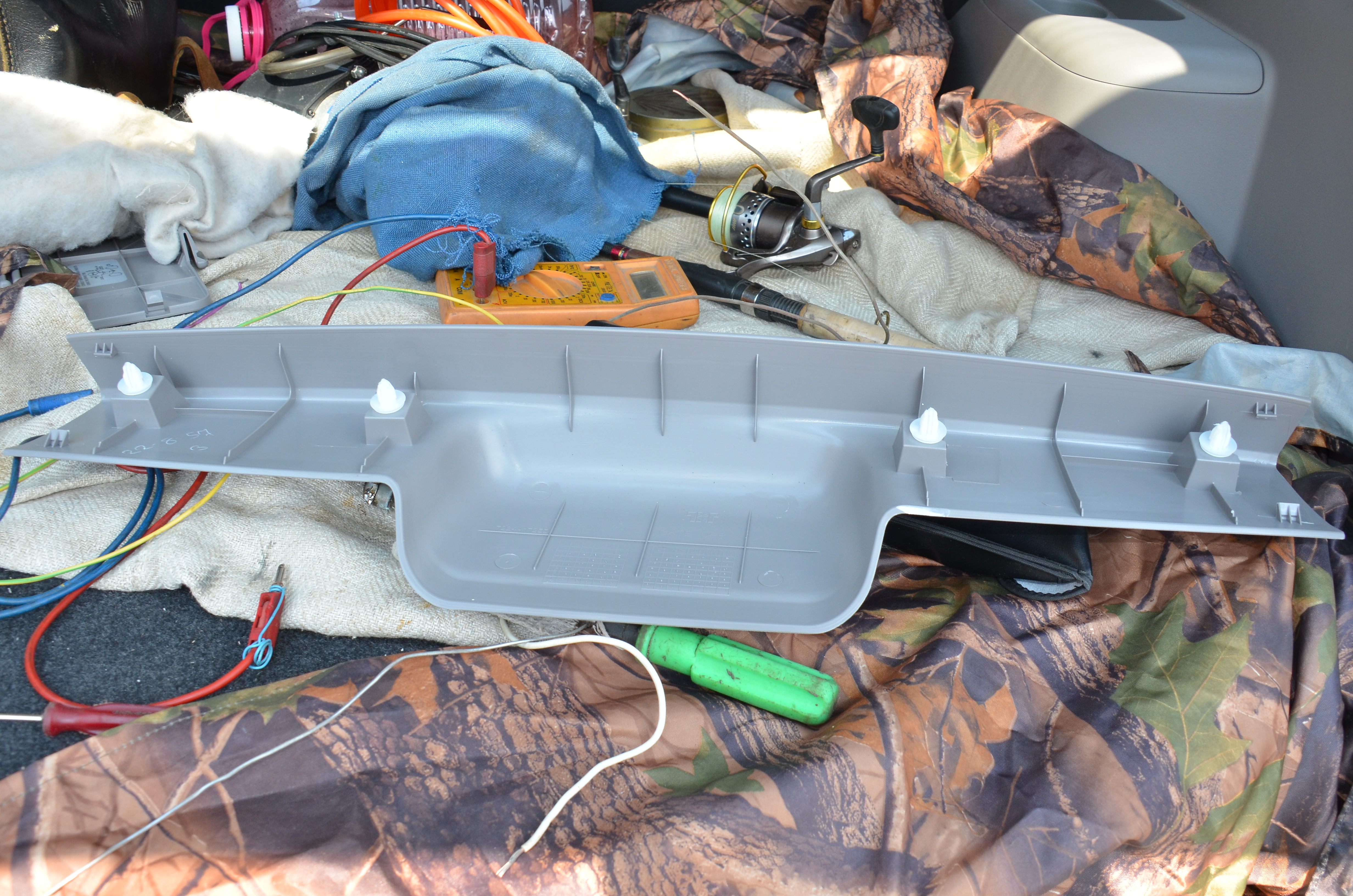 самодельн. к/к, пенал-органайзер в багажник, компрессор БЗД в багажник, возвратная пружина привода вкл./выкл. сцепления, доп. вентилятор радиатора кондея, доп.свет заднего хода
