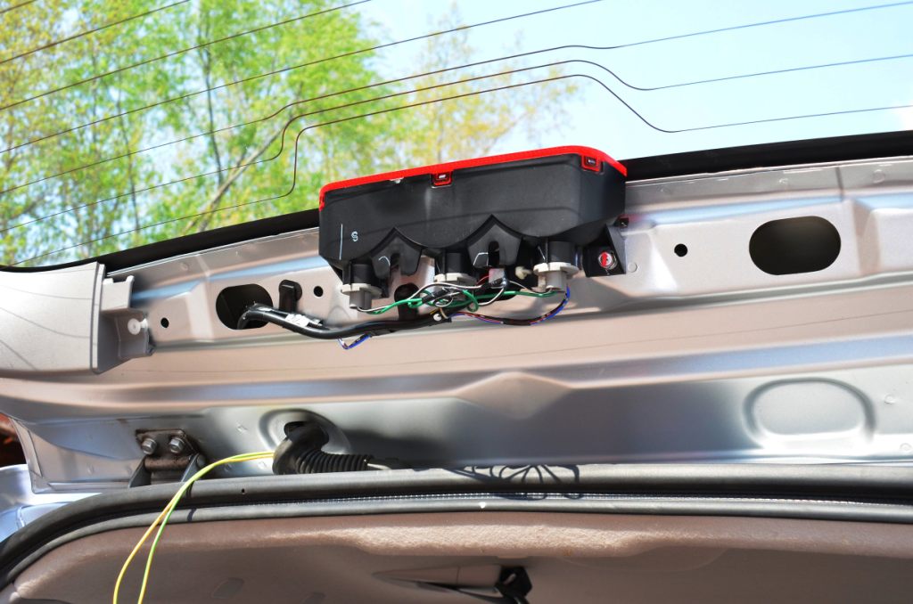 на фото только фазы протягивания проводов и вид снятого чехла штатного стоп сигнала, готовой конструкции. и зажжененый, но сегодня сегодня солнечно, а когда стемнеет - я уже приму свои 100 грамм (авто ставлю подальше от дома, чтобы с утра пройтись в целях гимнастики) да и фот в гараже остался. завтра выложу. главное - не нарушаю конструктив и свет СВЕРХУ, что практичнее, чем 100 ватт на крюке фаркопа и антивандально , и есть поле для экспериментов со светодиодными лентами. я эту кривовато приклеил, переклеивать было лень. посмотрю как работает, тогда внесу коррективы