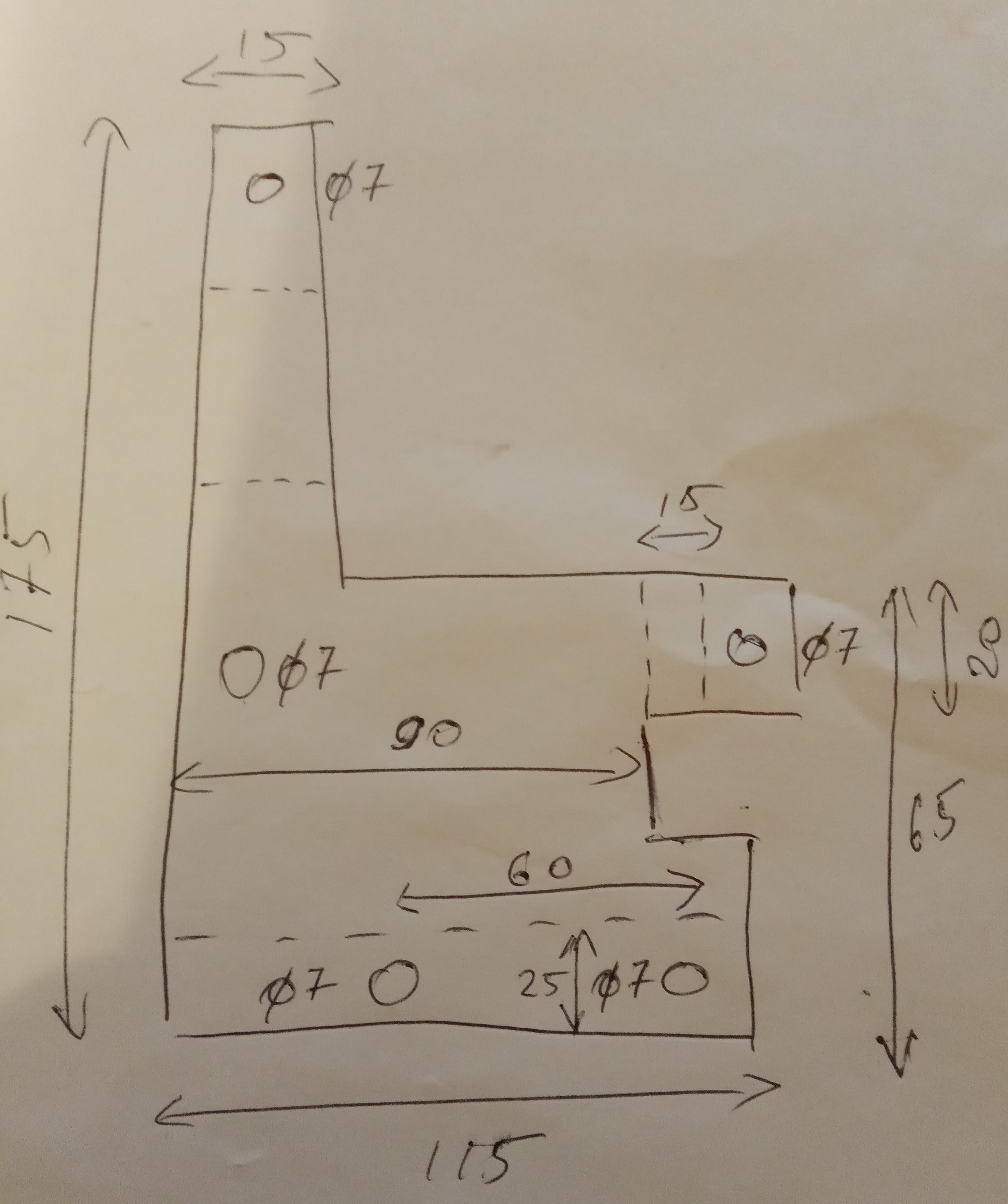 2. выкладываю фото чертежа и кронштейн в сборе - как получилось. может, кому пригодится... идею подсмотрел на драйве. чертеж относительно фоток кронштейна немного изменил - так будет лучше, поскольку проводка к блоку совсем без запаса. там, где размеров нет - надо подбирать по месту. лишнее - обрезать.