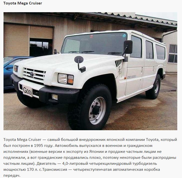 В довершение...найди Хаммер на МКПП или мега крузер от тойота вот такой,как на фото,а это военные машины