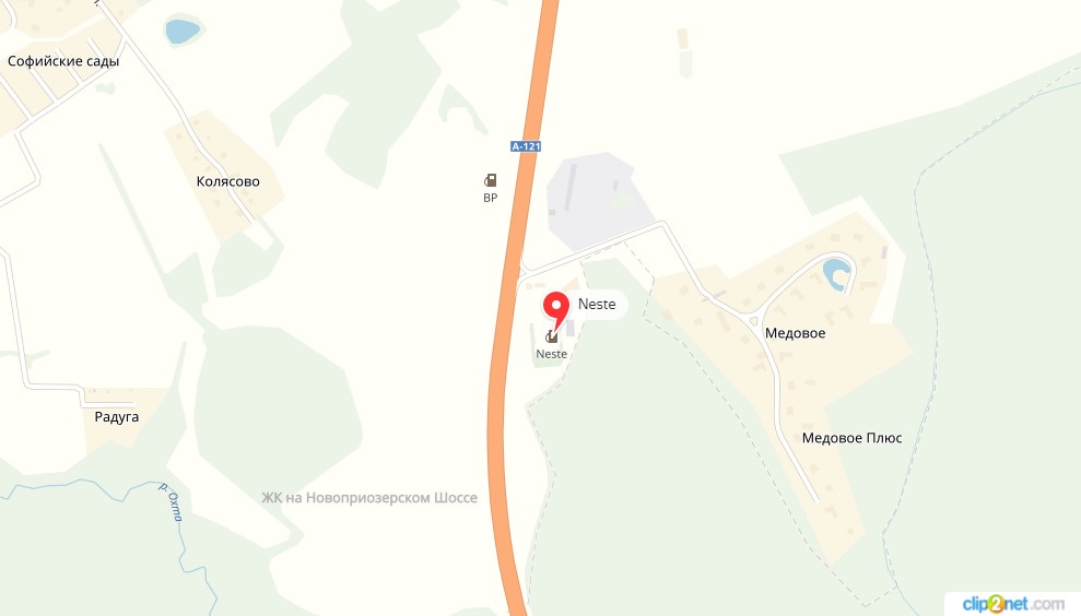ровно через 9км. от КАД будет поворот на "Медовое" это и есть заезд на заправку NESTE