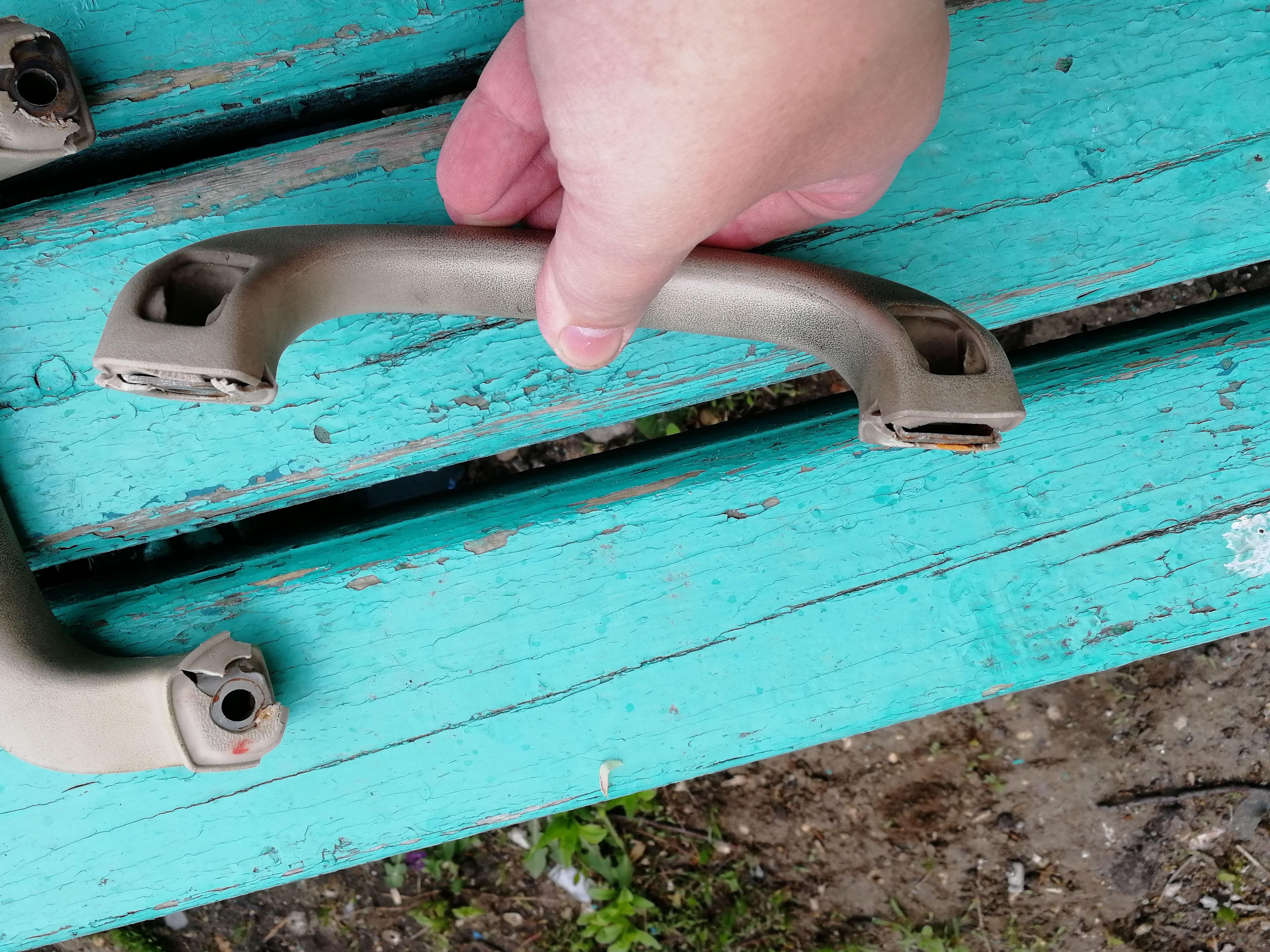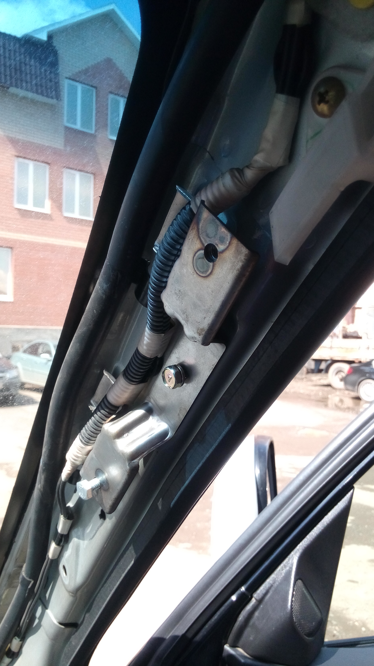 Ну что же. Сегодня установил ручки передних стоек. Были куплены новые оригинальные ручки . Кронштейн который под пластиковой обшивкой был модернизирован под установку ручек,а именно прихватили сваркой гайки на 6 . В качестве крепления ручек были использованы болтики под головку .Фото прилагаю.