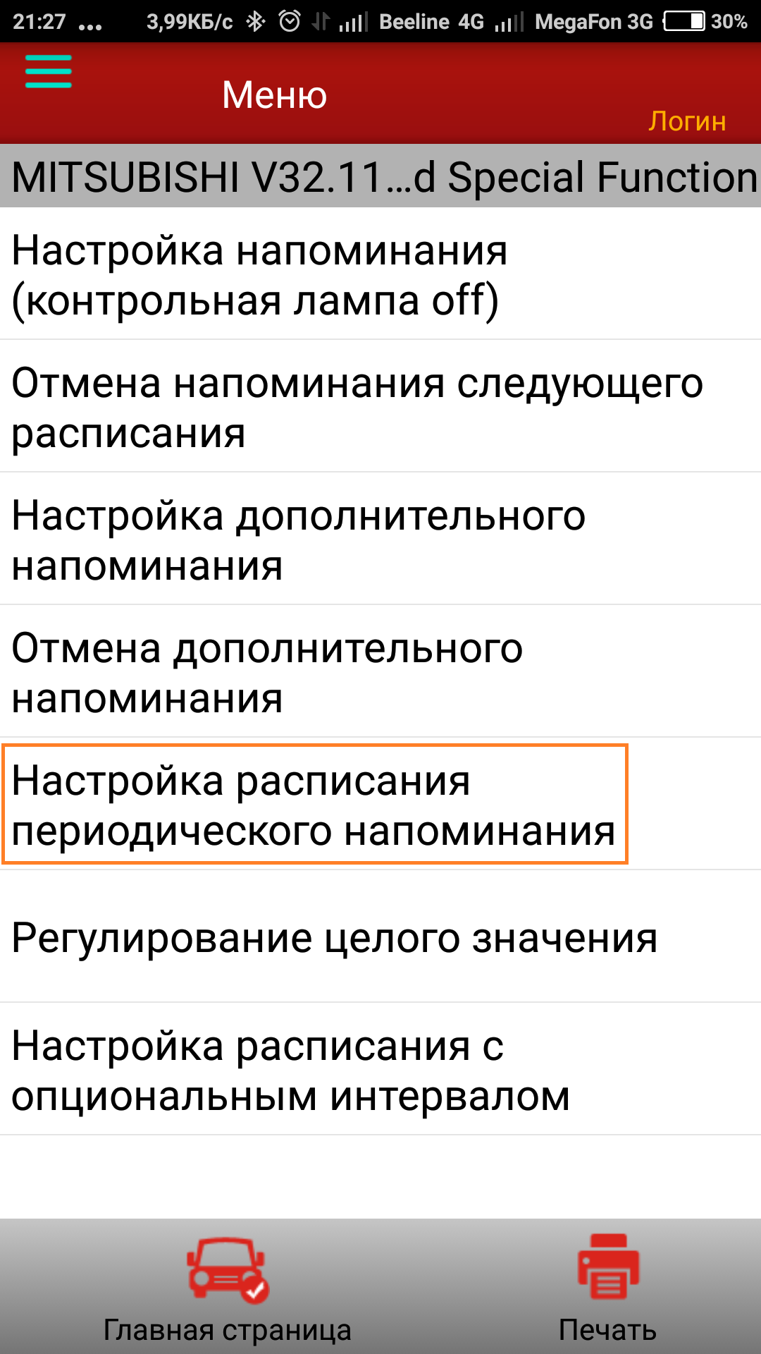 4. Напоминание техобслуживания