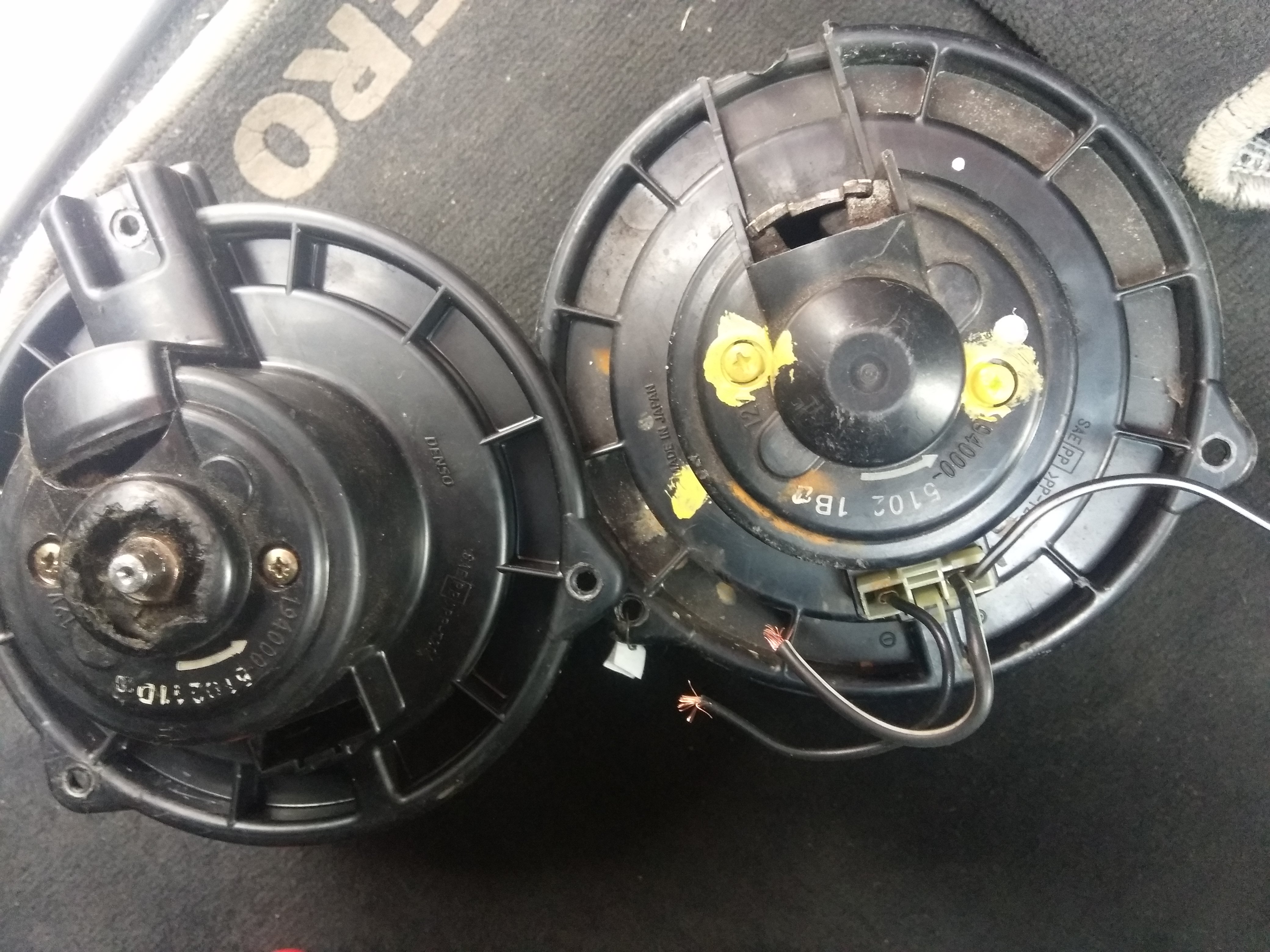 Итог: моторчики , корпуса, фишки и крыльчатки 1:1 одинаковые. Не стал переставлять в старый корпус - всё отлично держится и на двух саморезах и г-образной крышечке(переставил со старого корпуса). В машине - ураганный ветер и тишина