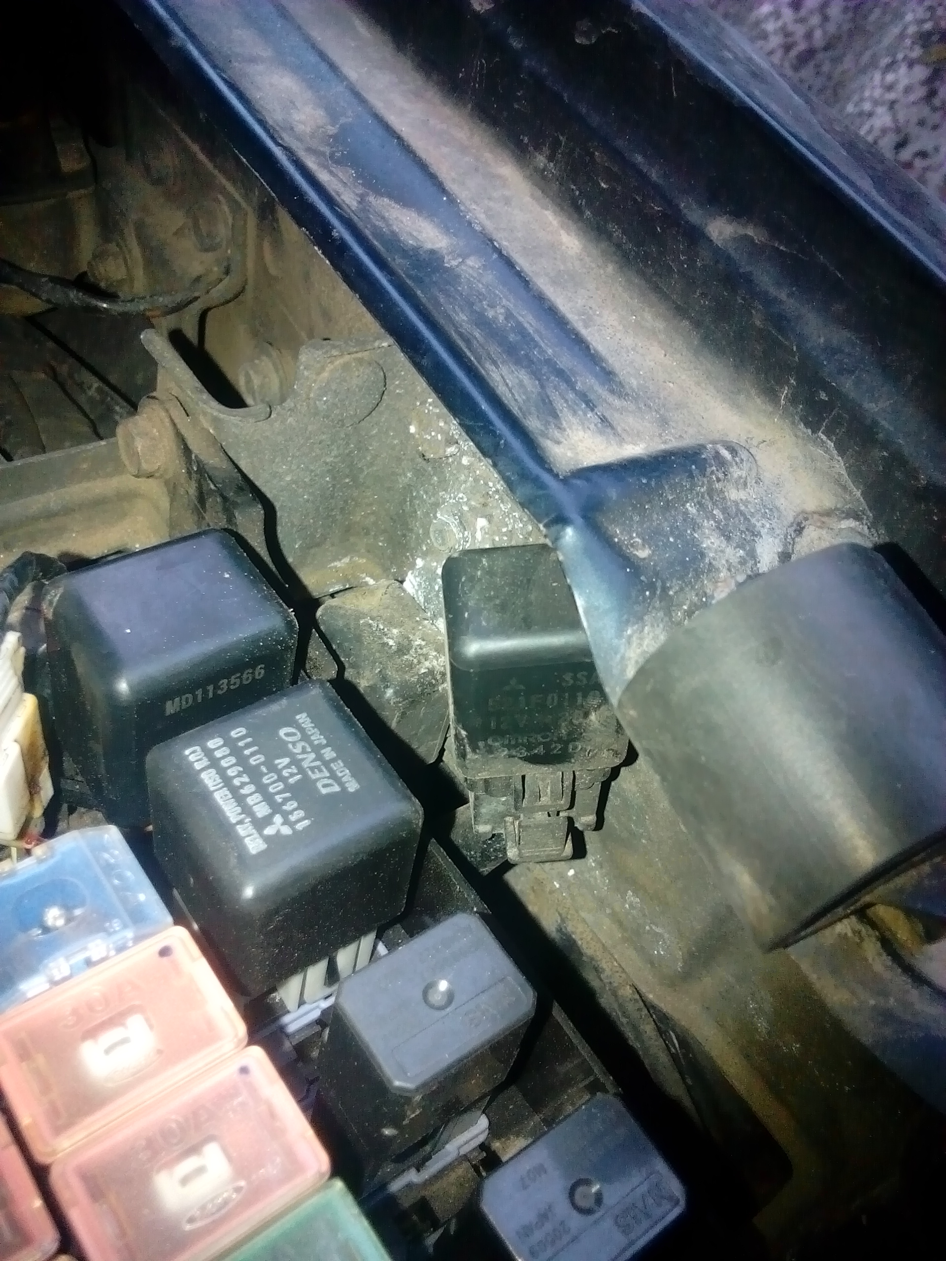 Реле которое не прикручено. Крышка предохранителей снята для удобства съёмки.