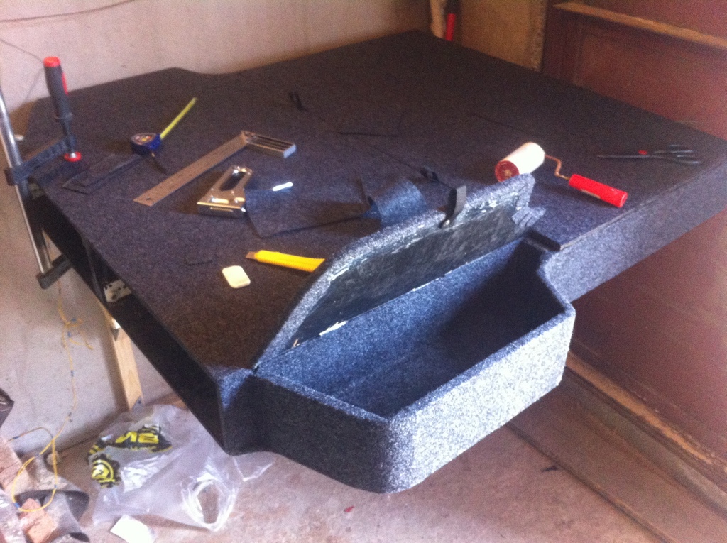 Клей простой, без экзотики, дешево и сердито. Все края загибал, на торцах держит неплохо (по крайней мере ничего не отвалилось, пока). Дополнительно на загибах карпет пробит степлеромюрий юрикович писал(а):а подробнее по оклейке карпетом? какие проблемы ? какой клей не из экзотичесих? как илеать стыки, например, загибая покрытие крышек на боковины? есть ли тонкий карпет, чтобы легче гнуть?
