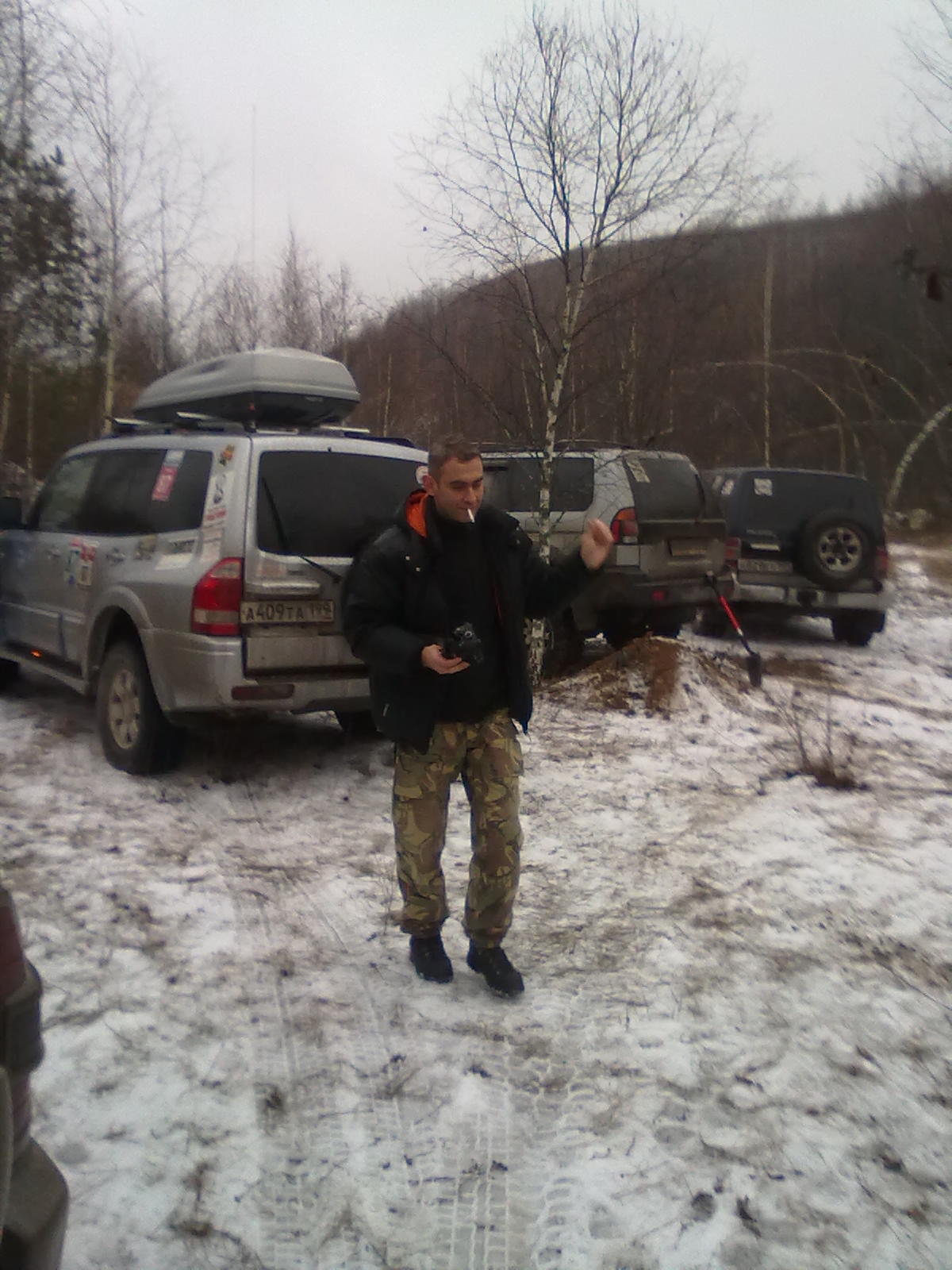 Это наш лагерь в ложбинке. Здесь на склонах под елками прямо в сумках можно найти дрова заботливо наколотые и припасенные оргами