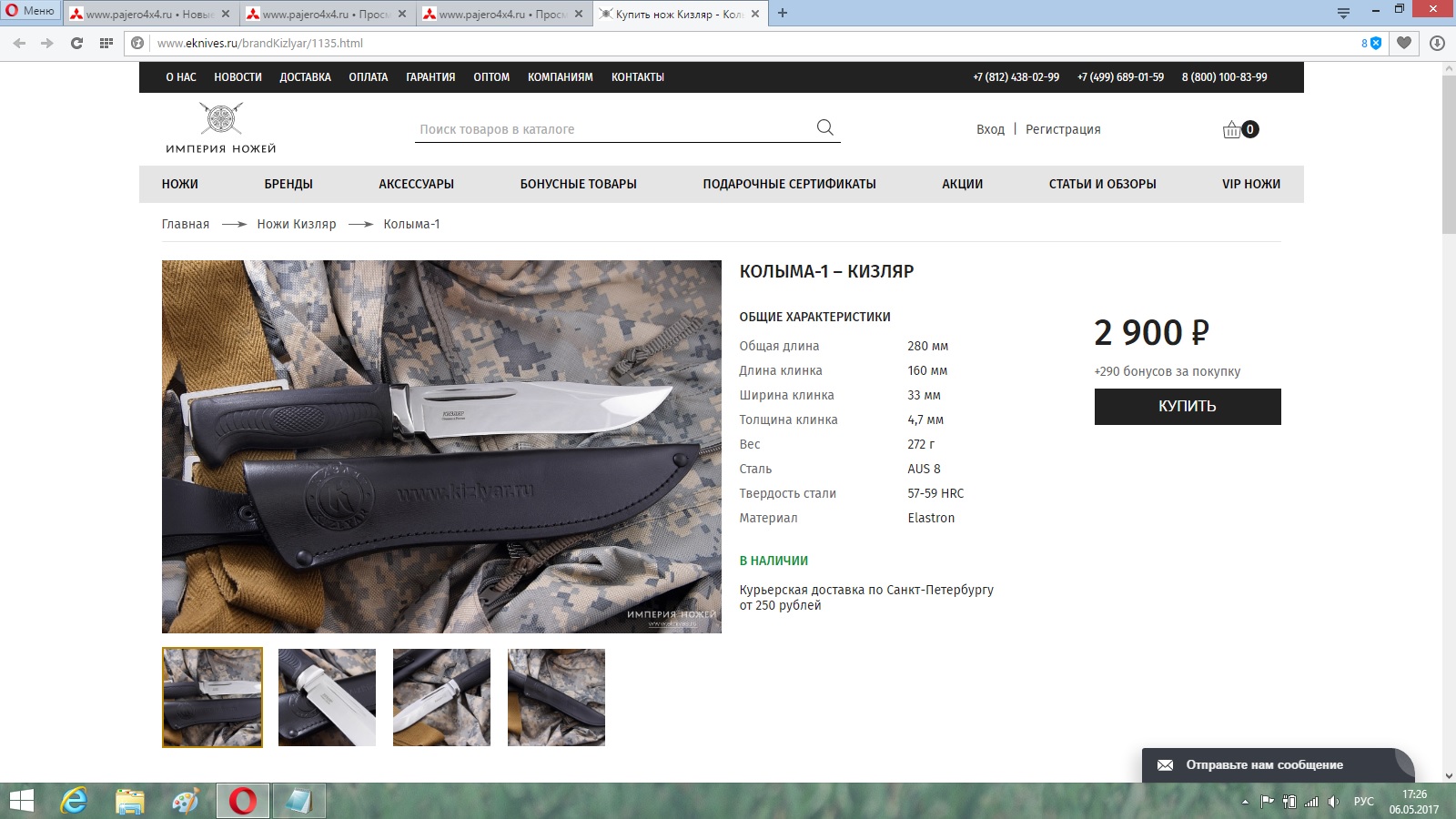 Набери сайт "Империя ножей"... Это в Питере на В. О. Они офДиллер кизляра. Я там все ножи беру. Там и Колыму-1 я брал.