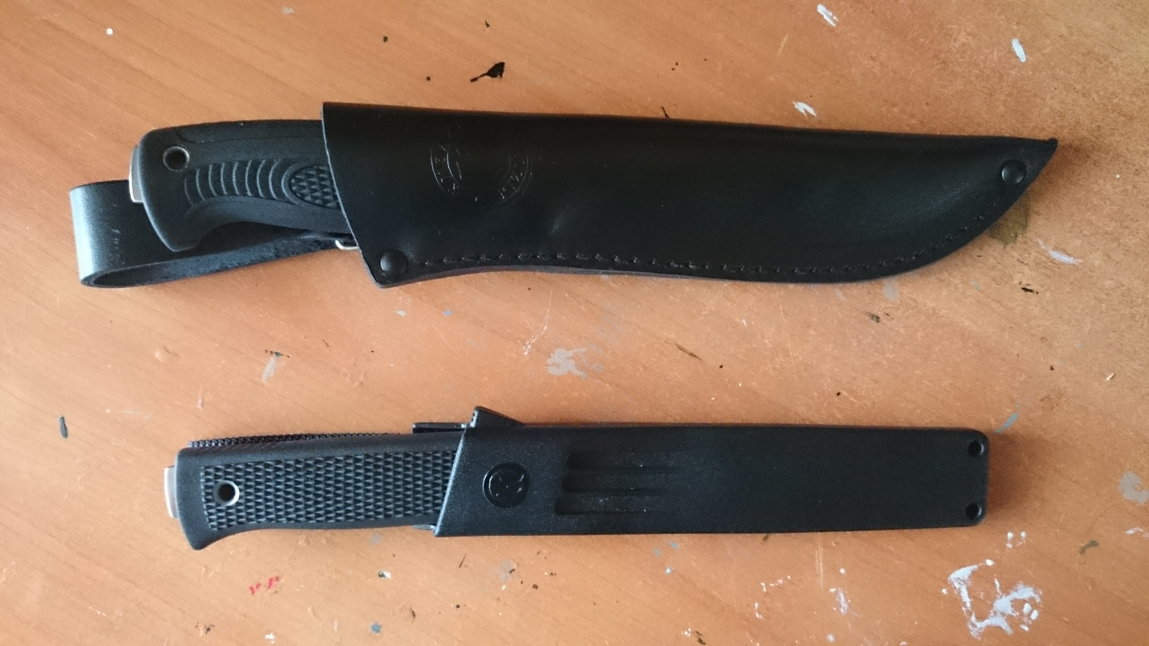 Компактные ножны, небольшой размер, такой носить скрыто даже в лёгкой ветровке- никаких проблем, да и в лодке с ним удобно. Спуски большие, немного вогнутые. У Руза спуски вообще на всю ширину, но прямые. Но форма клинка у Руза не так радует мой глаз. Поэтому взял именно Стрикс. Сталь опять же AUS 8, рукоять из эластрона. Но сама рукоять тоже поменьше, поэтому ощущения от хвата не такие приятные, как от Речного, но для такого размера ножа вполне удовлетворительно. Цена ещё приятнее, 1500 р.