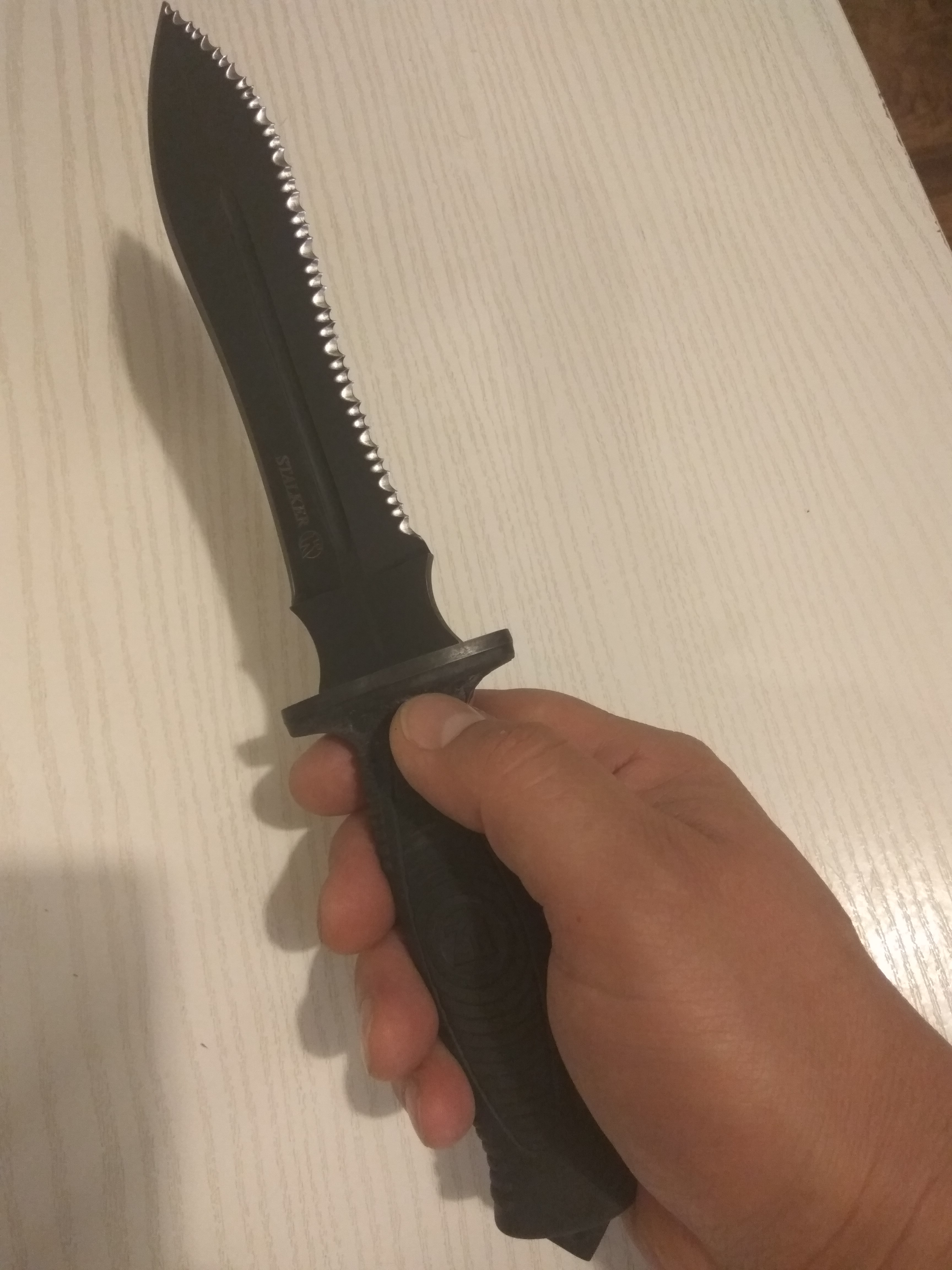 оказался самое то что нужно. Сталь та же AUS 8. Рукоятка - эластрон, в руке сидит как влитой. Да и цена вполне порадовала, всего 1900.