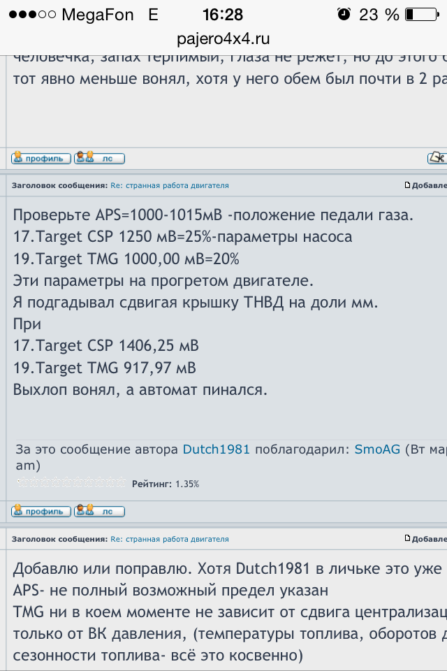 31 это ошибка связи по кан шине как я понял. Двигать позиционер зачем? Чуть увеличить обороты если только, на прогретом моторе проседают до 700 на передаче, на нейтрале 750 стоит четко.SmoAG писал(а):51, 52 - http://pajero4x4.ru/bbs/phpBB2/viewtopi ... =3&t=43988 - советуют забить