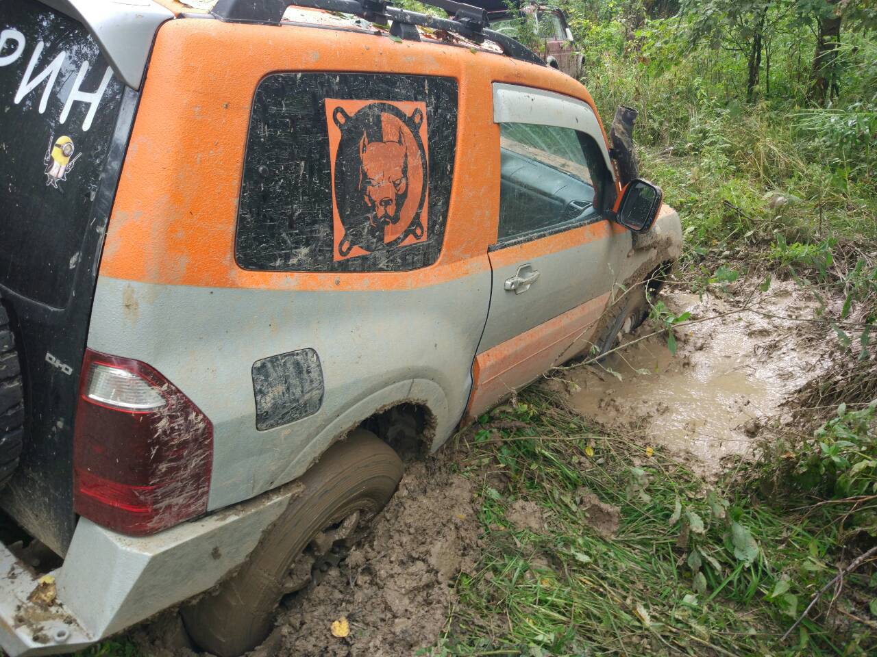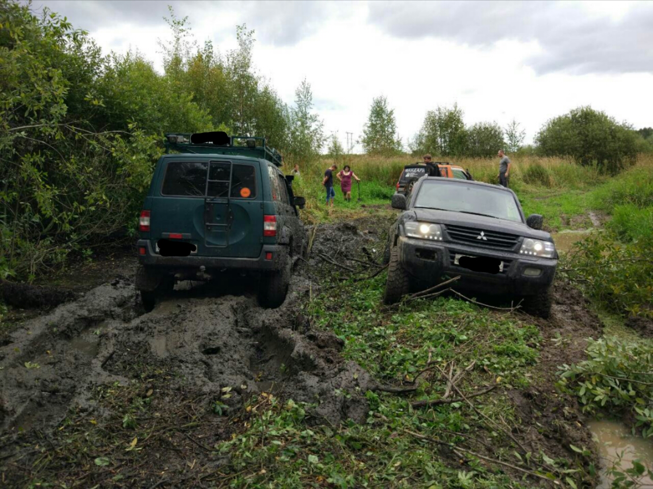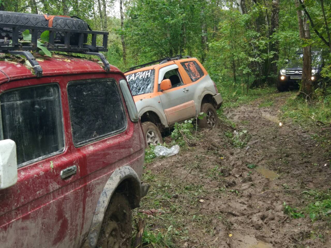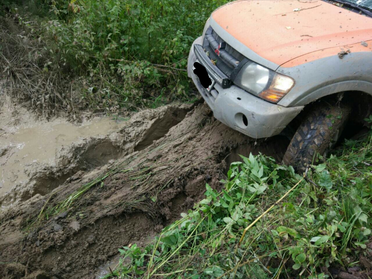 На колее не хватало сцепления. Резина в слик, а боковин нема на шоссейках. Даже геолэндар 012 в принципе цеплялся, а гудричи ат боковины позлее будут. 012 на удивление чистюли. Машину не закидали, не спешно, но выползал самостоятельно.