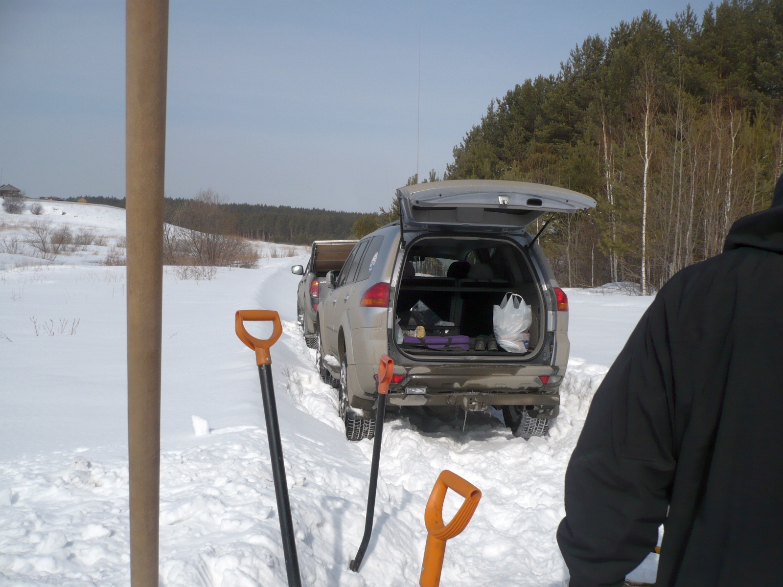 Куда хотел не проехали, там целина снежная.