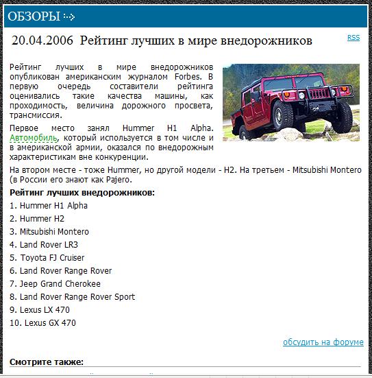 liss1975 писал(а):Вот скриншот статьи которая еще раз подтверждает, что ПАДЖЕРО (Монтеро) один из самых лучших внедорожников!
