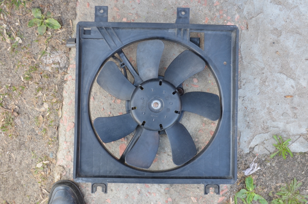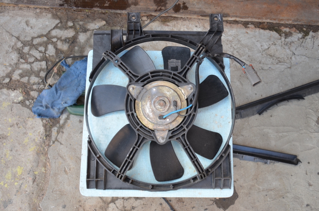 купил вентиль за 5 долл у приятеля, от какого авто-не знаю, вроде тоетообразное, или кореец- там их куча-одно на одном. но выбирал свежее на вид пузотер (первертыш) с двумя вентилями на радиаторе. диаметр лопастей-32 см, вся конструкция 36 х34 см. придется курочить, чтоб влезло между металлической стойкой посреди радиаторного отсека и левым(по ходу) металлическим профилем, к которому прикреплен датчик наружной температуры. важно не только сделать в размер и на места крепления, но и уменьшить площадь- как ветровую тень на радиатор кондея от каркаса вентиля. сейчас поеду примерять и фотать