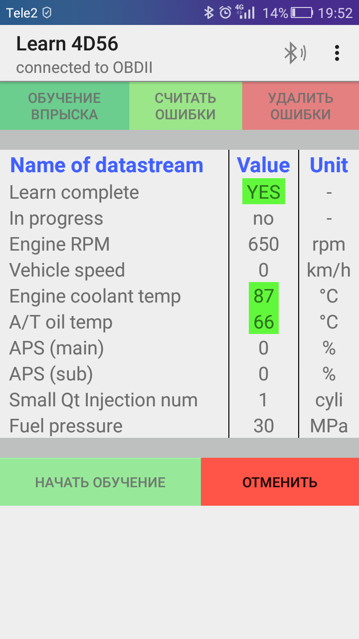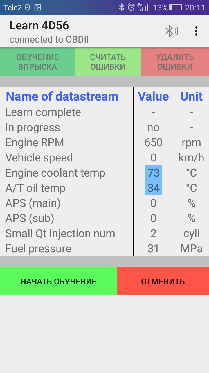 Сегодня показания торк вернулись к привычным, обучить форсунки так и не удалось..
