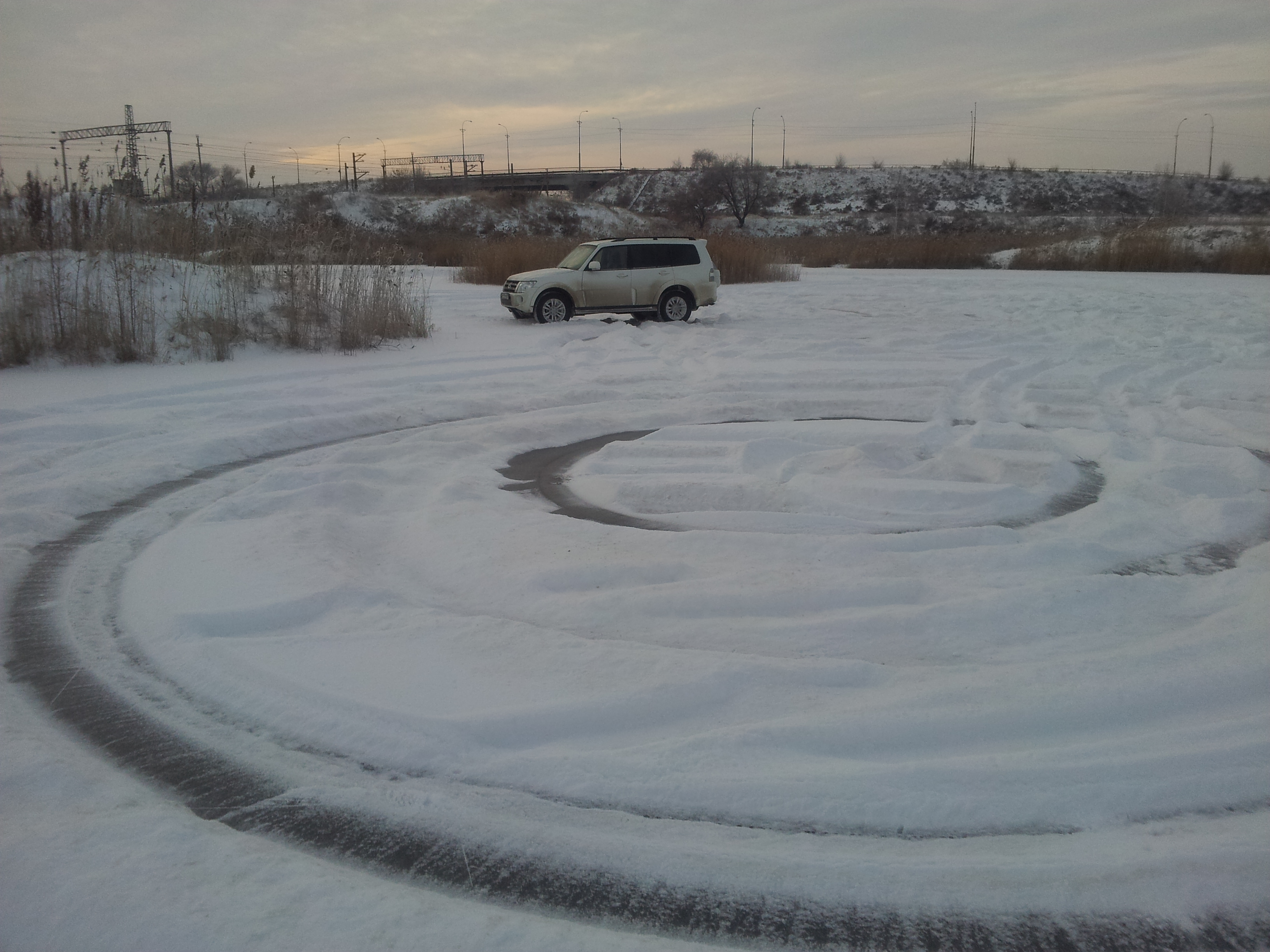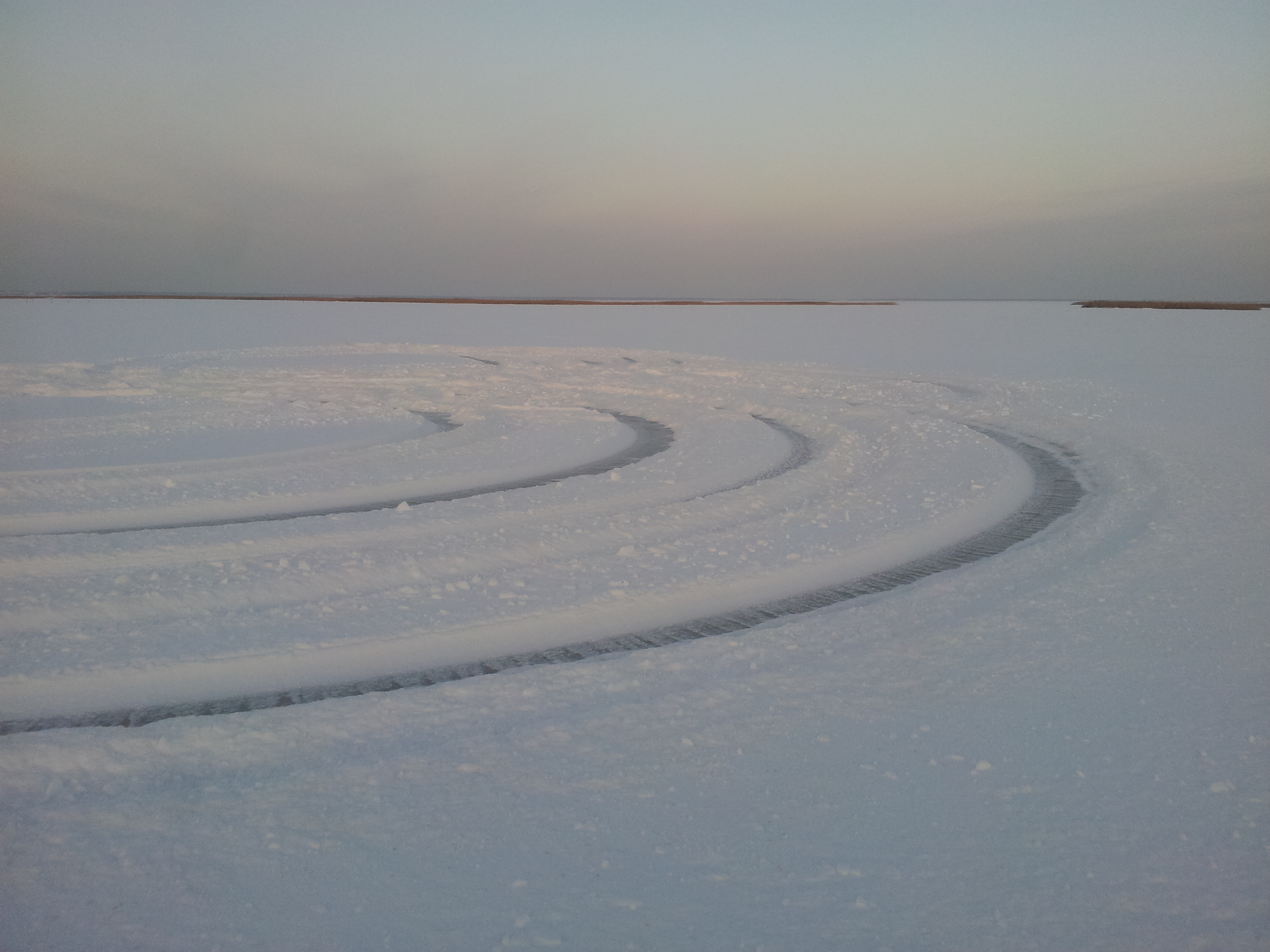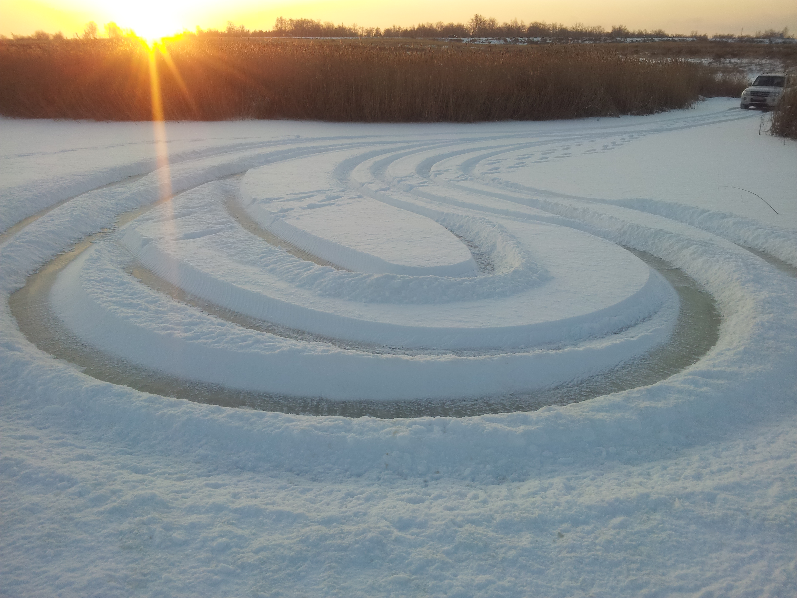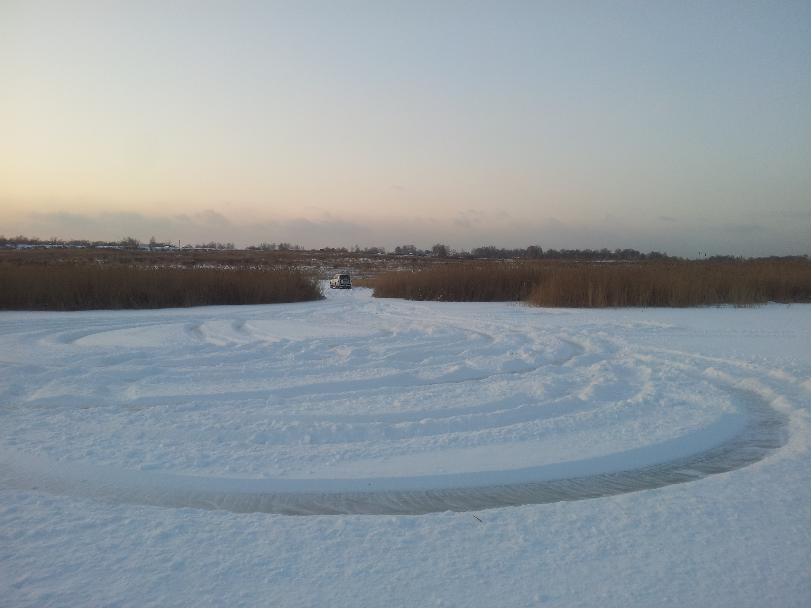 Сегодня нарезал круговую ледяную трассу на другом озерке для отработки экстрим вождения...