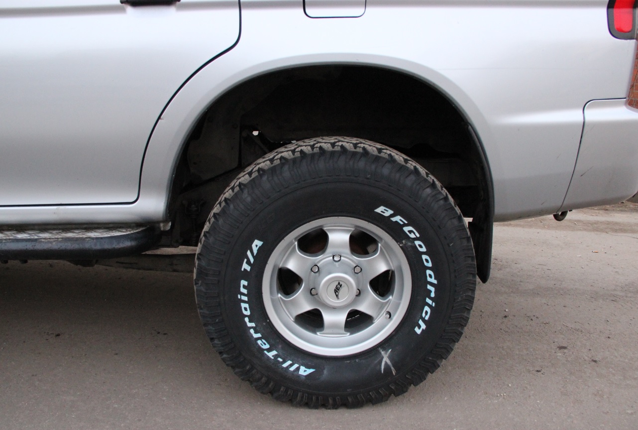 Купил резину BF AT 32/11.5 R15, а диски у меня были 5 штук AEZ немецкие. Когда поставил на машину на глаза вылезли 2 косяка. У дисков большой вылет и колеса сильно выступают (машина постоянно мажется в грязи) в ближайшее время буду ставить расширители. Второй косяк разочаровал меня больше... расстояние от арки до колеса стало небольшое. Когда прокатился, понял, что машина стала жесткая, подвеска стала пинаться. Тогда я специально загрузил машину так что, ж_па просела и арками почти легла на задние колеса.