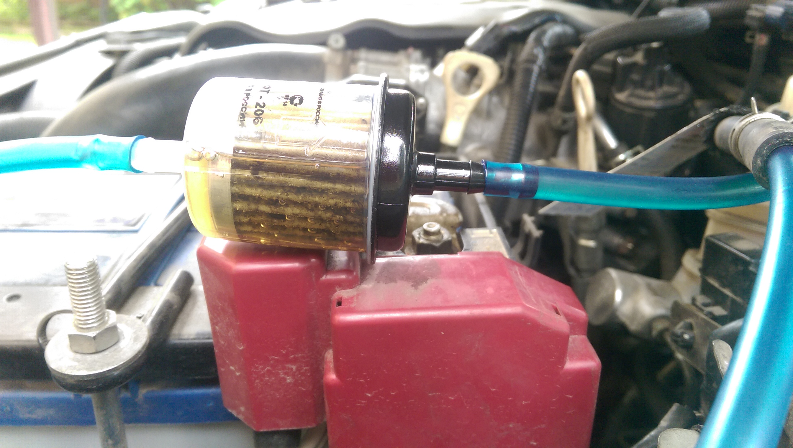 Фильтр и стоит на подаче, обратка в банку и через него (фильтр), снова в рампу. Короче, 15 минут на холостом, как написано в инструкции к жидкости, полет нормальный - чистота жидкости в банке стерильная. Думаю, дай подниму оборотики на минутку-другую. Как только вывел на на 2000 (выше не поднимал), это чудо и полезло в баночку. Продолжалось безобразие еще минут 5-10. Потом вроде все вымыло. Может со стенок рампы/трубок выдавило. Это не песок/густая грязи, как может показаться, это что-то типа тончайших пленок, которые выходили хлопьями в банку, а в фильтре они осели в таком виде. У кого есть аквариум с внешним фильтром, тот наверняка после чистки фильтра наблюдал, как из трубок в аквариум попадает налет с тех же самых трубок, только в случае с авто, он другого цвета.