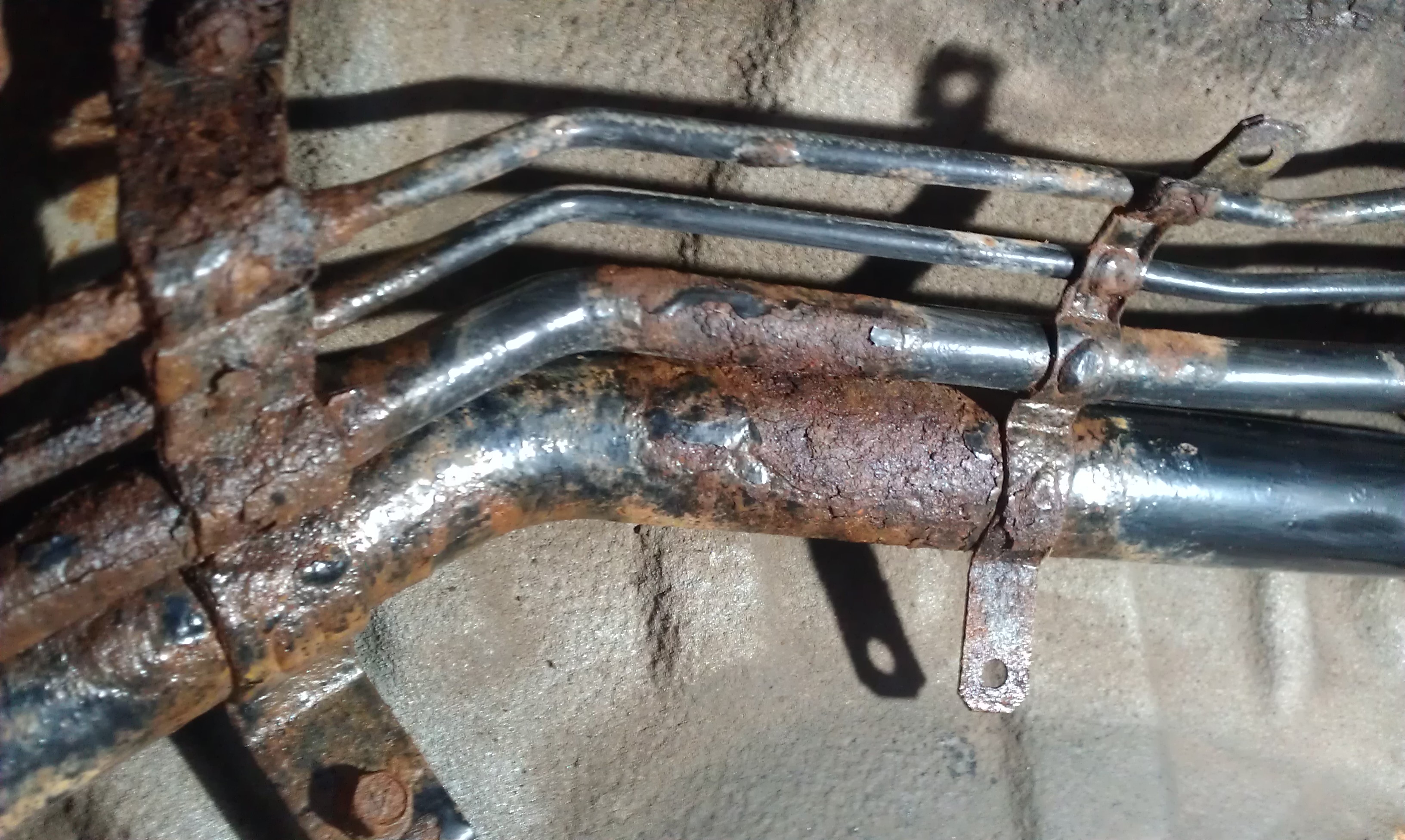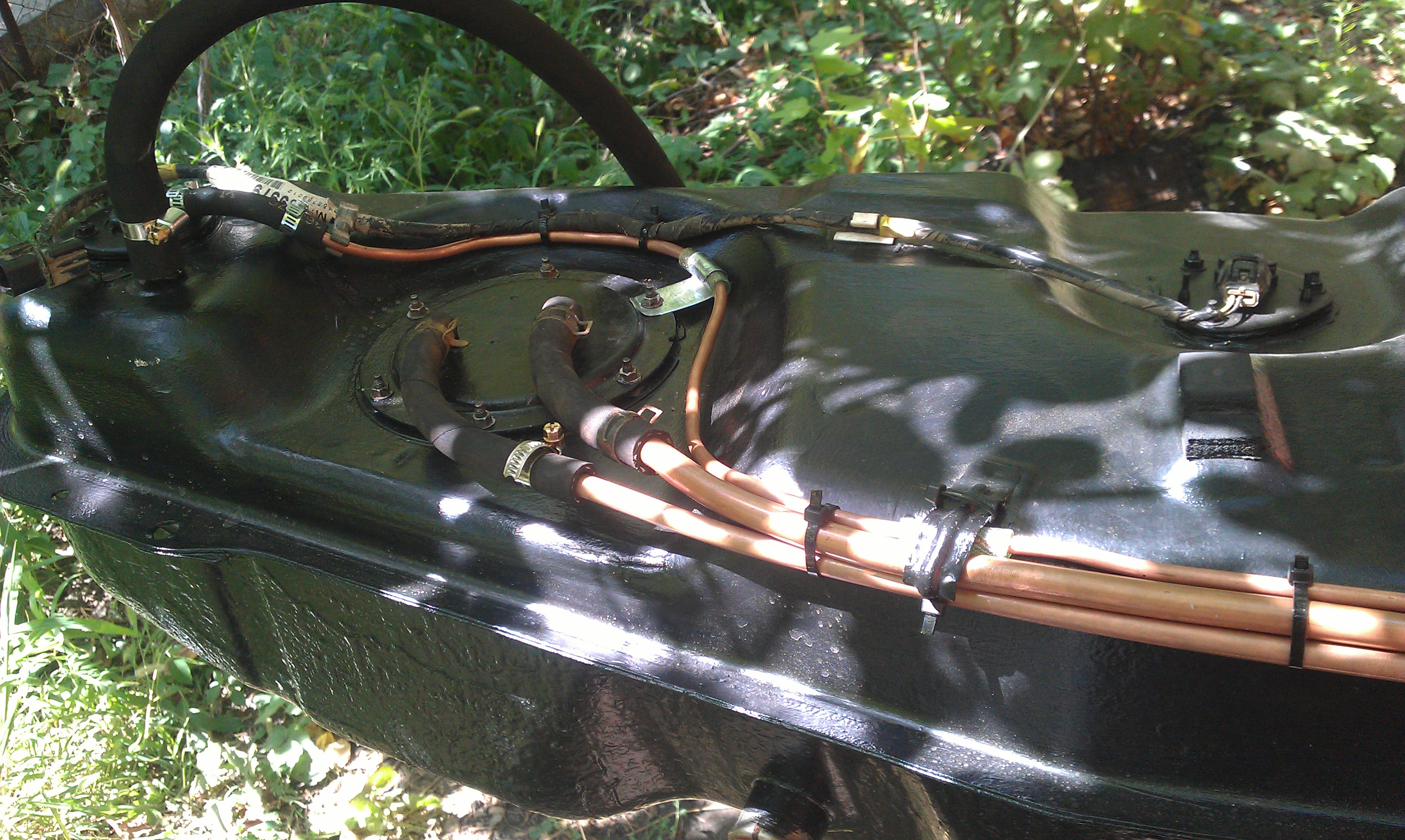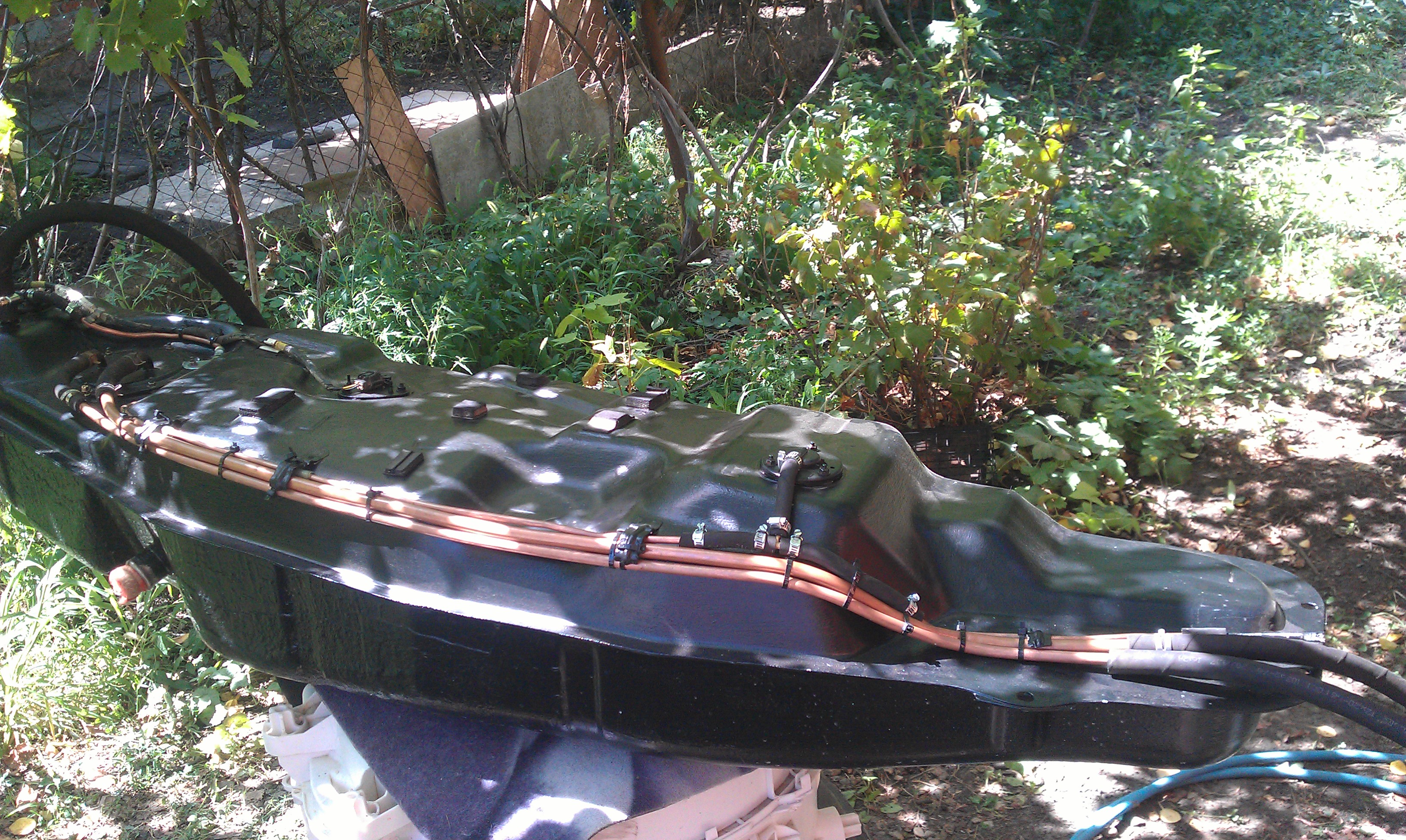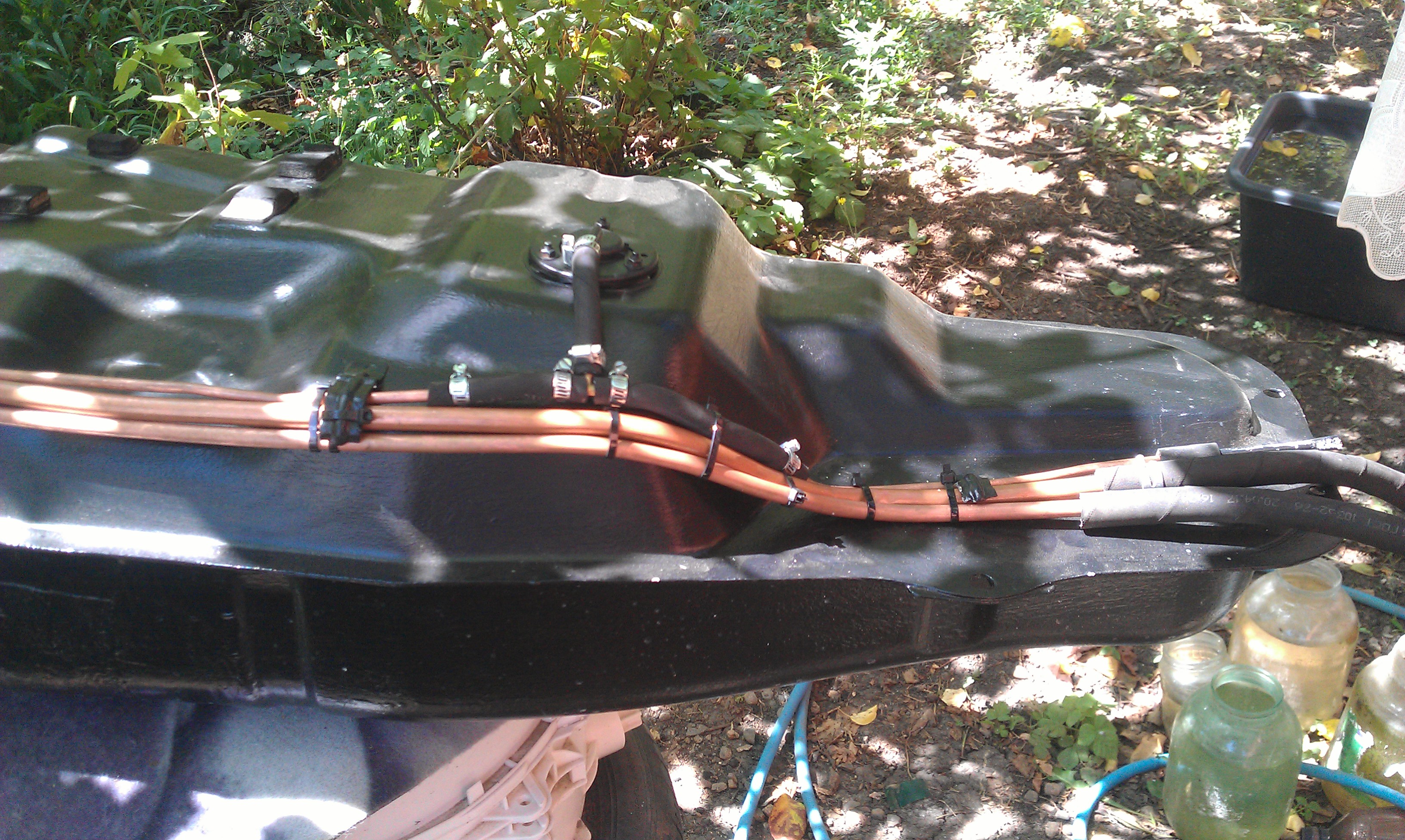 Тоже решил заняться топливной. Бак снят без ямы, бак ржавый но живой- зачищен болгаркой, загрунтован, покрашен, горловина полуживая- реанимирована, трубки все ржавые под замену. Вентиляция бака выведена под капот, думаю под капотом ей будет лучше, чем под крылом. Ну, остальное видно на фото.