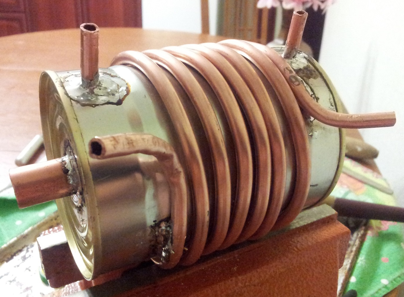 Да мострячить - не так уж и много по факту - вечер с пивом. Проблема вылезла после установки - вроде запаял качественно, но под давлением капало. Видно каналы сначала были залиты канифолью, а потом их промыло, т.к. сначала не капало. Причём не видно откуда капает. Пришлось снимать и продувать в водяной ванне. Пузырей было много - штук 5 течей. Устранил, ещё и герметиком замазал. Сейчас нормуль. Греет и подачу и обратку. Разницы во времени или температуре прогрева двигателя - не заметил. Но не нравится вид - колхоз все равно. Буду искать вариант с видом "под заводской". Вот где-то видел на картинке пластинчатый теплообменник от двухконтурного газового котла - думаю можно попробовать приспособить - суть-то там такая же - вода греет воду...