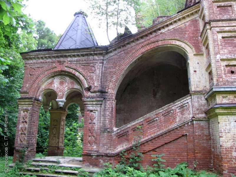среди шереметевских усадеб.Тихвинская церковь, хороший образец псевдорусского стиля, кирпичная церковь, построенная в 1868-1871 по проекту Н. Л. Бенуа на средства графа Б. П. Шереметева по образцу церкви в подмосковном имении Шереметевых - селе Останкино.