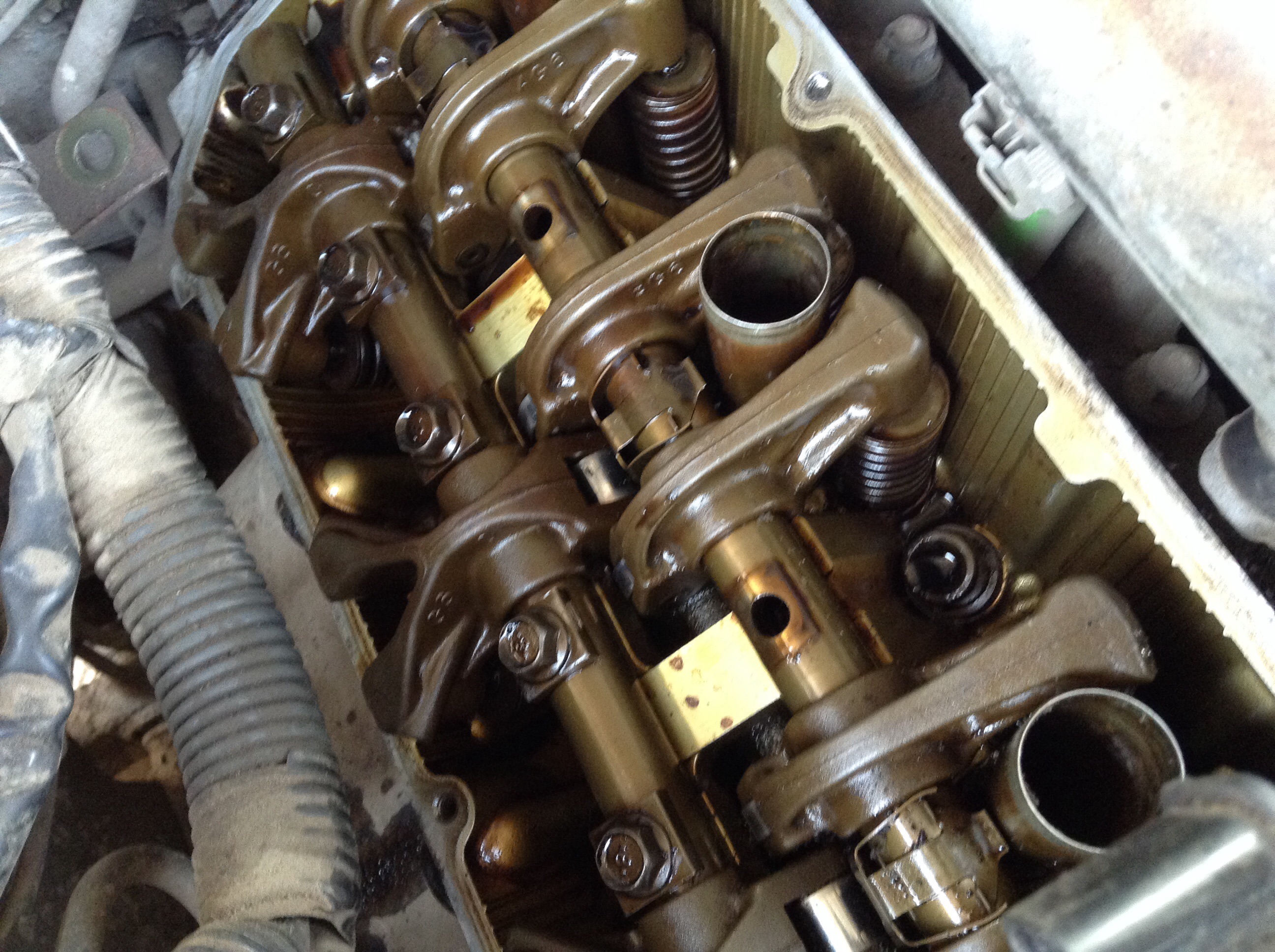 Тут мало мало фото. http://www.drive2.ru/l/6527116/ ГРМ снимать не надо. Только ось коромысел откручивать надо. Стяжками запасись пластиковыми 300 мм (широкие должны быть). Ось коромысла крути потихоньку, по одному - два оборота по всей длине. Закручивать также. Прокачивал солярой, как в мануале. Тут где-то ссылка была, могу поискать. Сразу меняй прокладки крышек (лучше родное брать), прокладки свечных колодцев. Также хороший доступ к заглушкам распредвалов. Если не менял - их тоже махни, копейки стоят. Там пьяный ключ на 12 сильно помогает. Прокладку под впускной меняй. Нижнюю которую. Ну и прокладку под дроссельный узел. Вподе все. Будут вопросы - пиши.<Вавил> писал(а):А расскажи поподробнее как гид рики менял? Распускал ли ГРМ или росто от крутил коромысла? Как вытаскивал, прокачивал и все все все. Купил аджусту себе. Тем более что в оригинале аджуста идет.