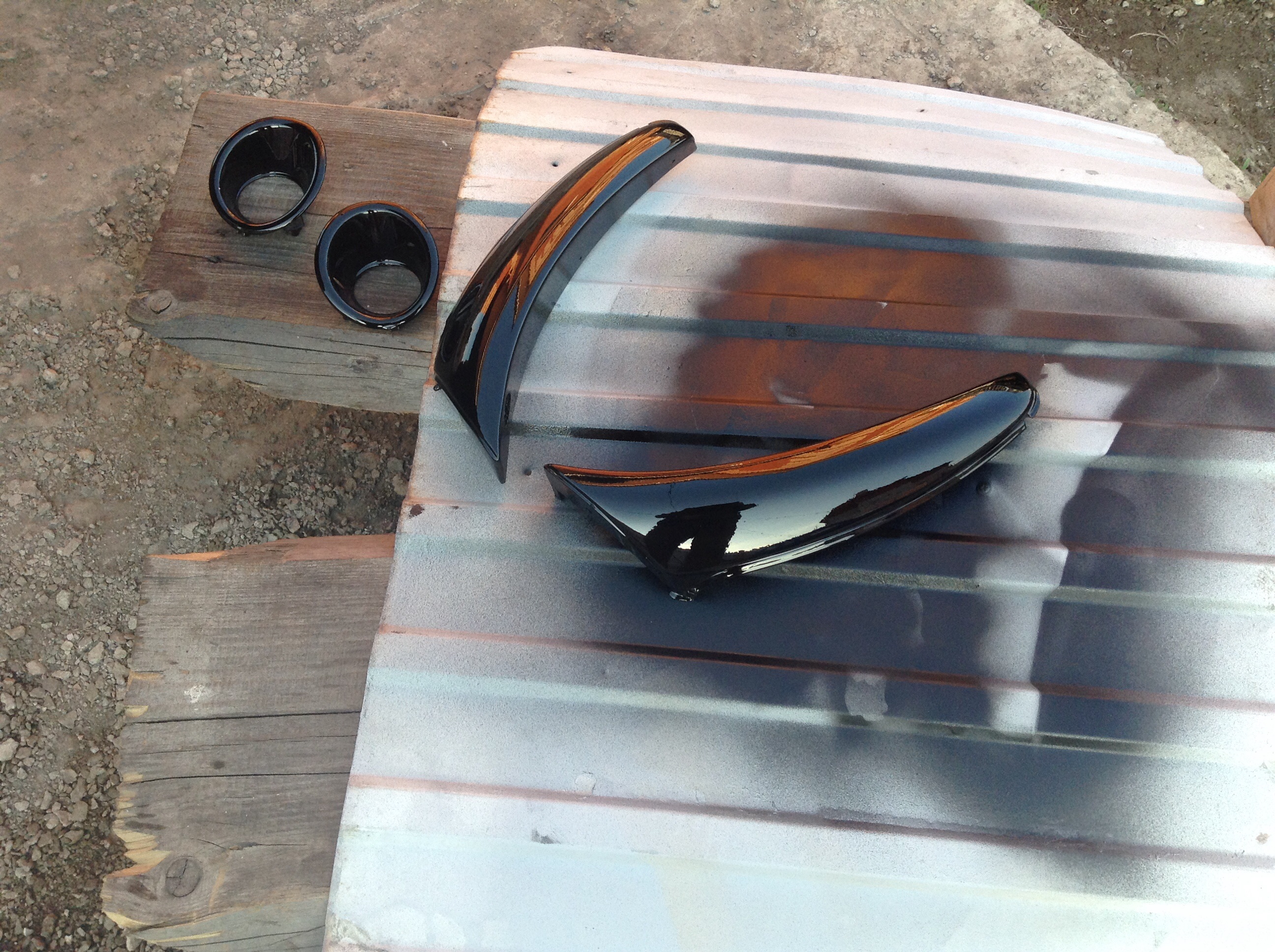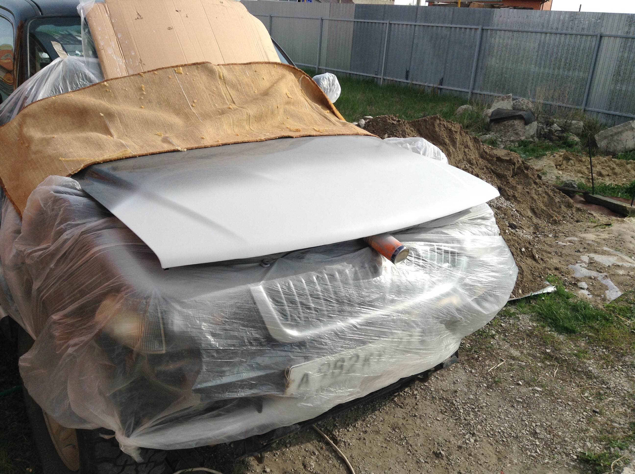 Спасибо! Сегодня затер грунт ТРЕМЯ шкурками разной зернистости. Также покрыл бампер, расширители и капот базой и лаком. Первый блин комом. Все как положено. На улице не айс. Пыль и мошка есть в паре мест. Не беда - шлифанем. Когда затирал капот и бампер - увидел гораздо больше косяков предыдущего маляра. Начинаю понимать почему берут большие деньги за покраску. Компрессор справился. Лак в паре мест имеет подтеки. Но это шлифуется. Фигня. Бампер и расширители занес домой. Капот остался ра улице. Самое главное, чтобы соседский кот на него не залез и не решил пометить (прибью заразу!). Прецеденты были. Если все будет хорошо - завтра надену капот и можно ездить. Бампер надо собирать. ПТФ и расширители ставить. ВСЕ крепления расширителей срезал болгаркой. Они оторваны от самих расширителей. Все было на двухстороннем скотче и саморезах. Завтра не выйдет - послезавтра буду колдовать. Надеюсь 13 го все смонтирую. Шлифовать буду позже, когда лак совсем высохнет. Нервничал как мальчишка. На семью наорал. Они как раз гулять ходили. А мне пыль ну никак. Извинился. В следующий раз на улице не решусь. Лучше найти хоть какое то, но помещение. Вот фотки после первого слоя лака.pajero696 писал(а):Бог в помощь!