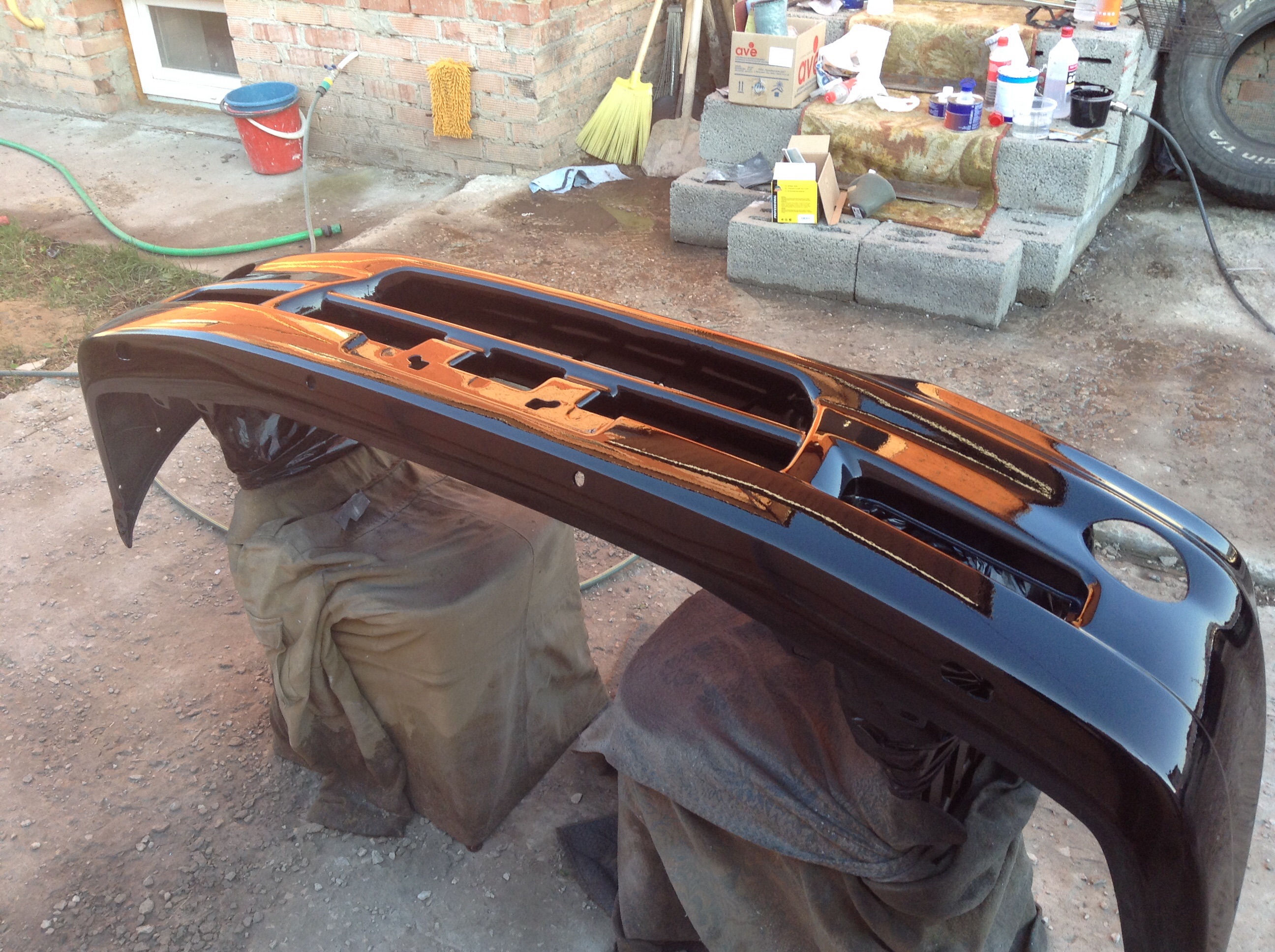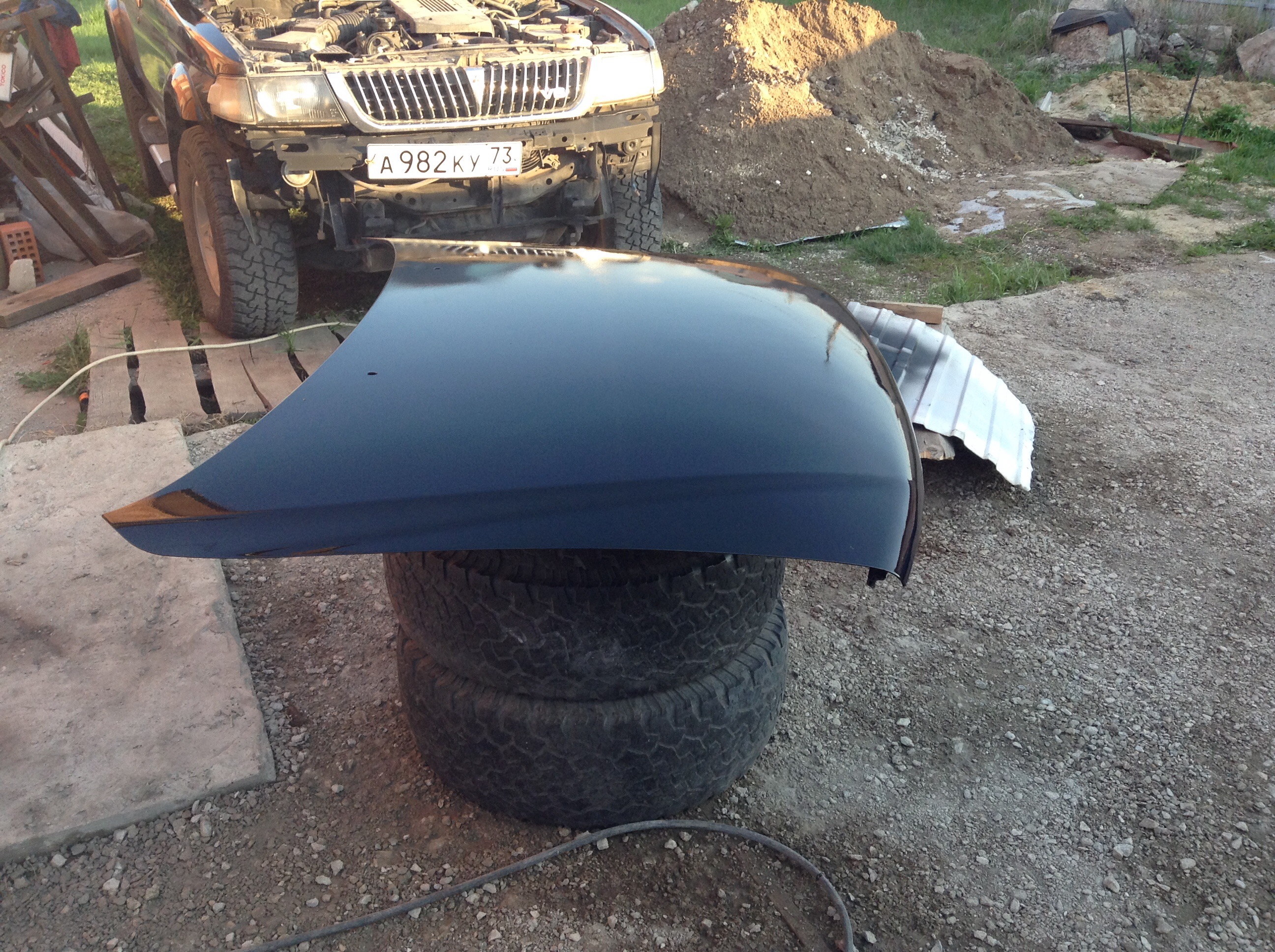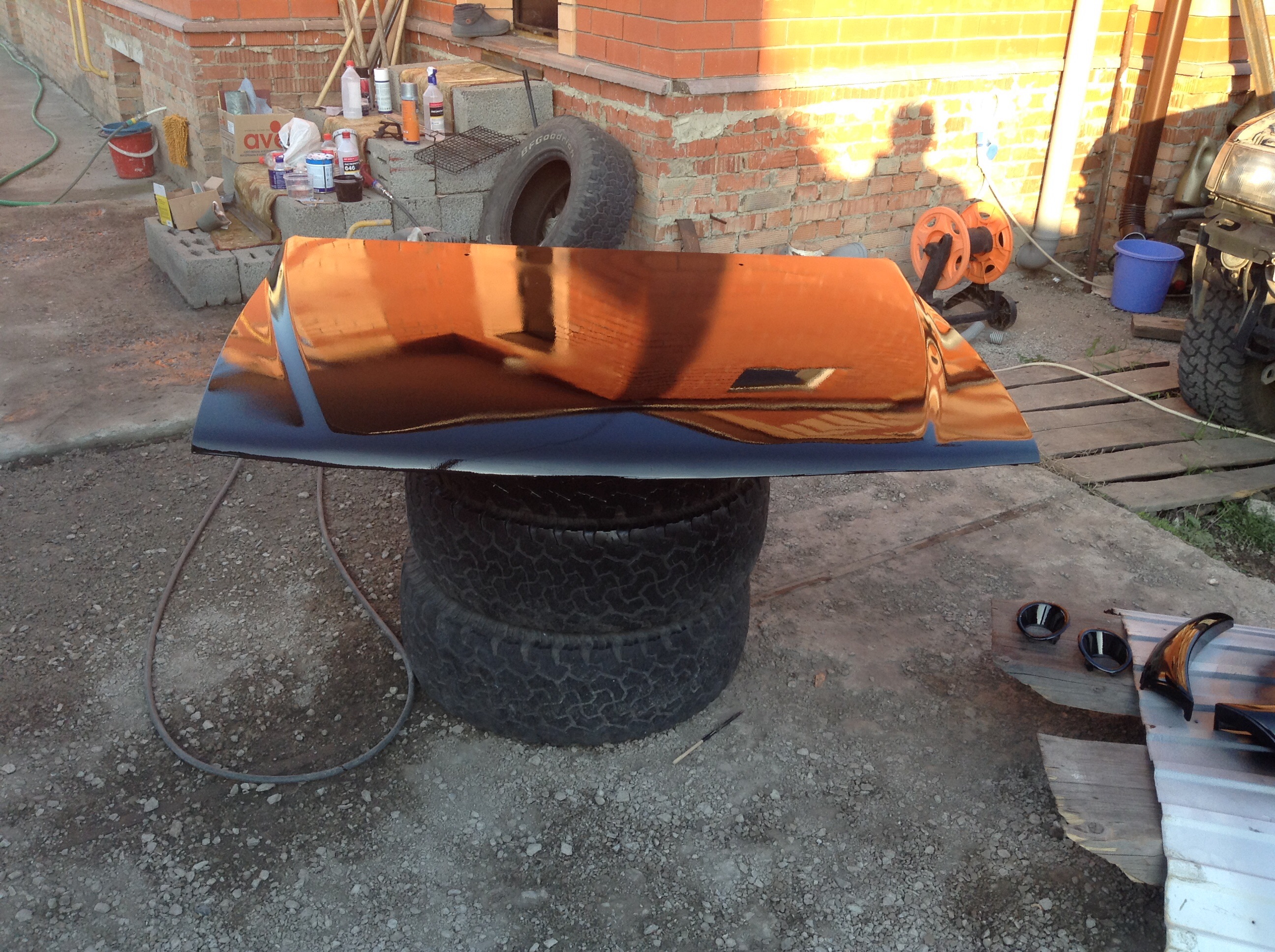 Поставил капот и бампер на машину. Капот еще надо полирнуть. Без пыли и тараканов не обошлось