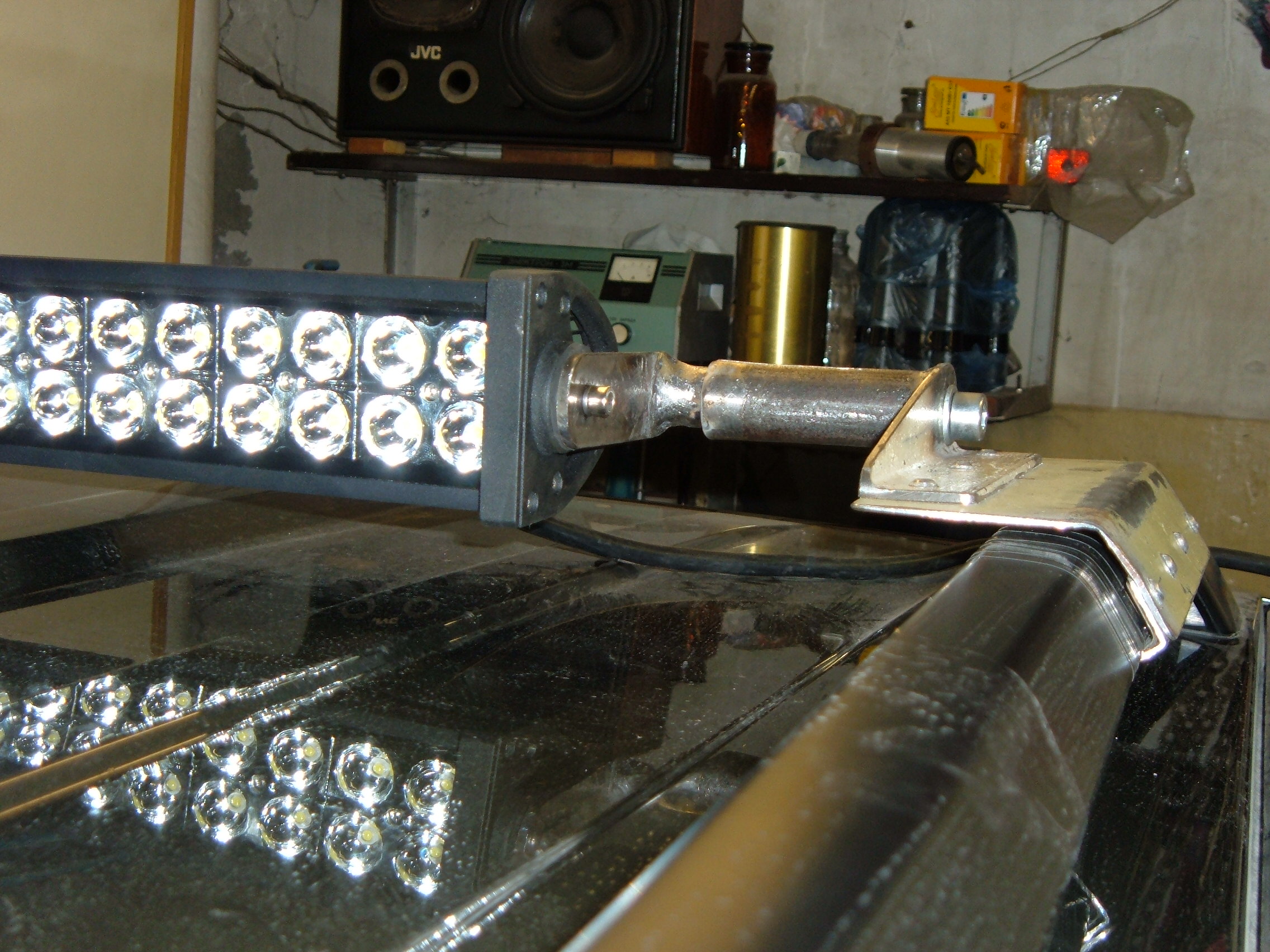 Вот сегодня из за пурги, дел особых не было, и решил добить таки крепёжку светопанели на рейлинги, всё таки, невзирая на сложность монтажа, ей там самое место. Теперь осталось грунтово-малярные работы и всё, ждать весны, для окончательного монтажа и электрики, ибо скромные габариты хоть и тёплого гаража, не позволяют выполнить всё до конца, не выехав хоть частично наружу.