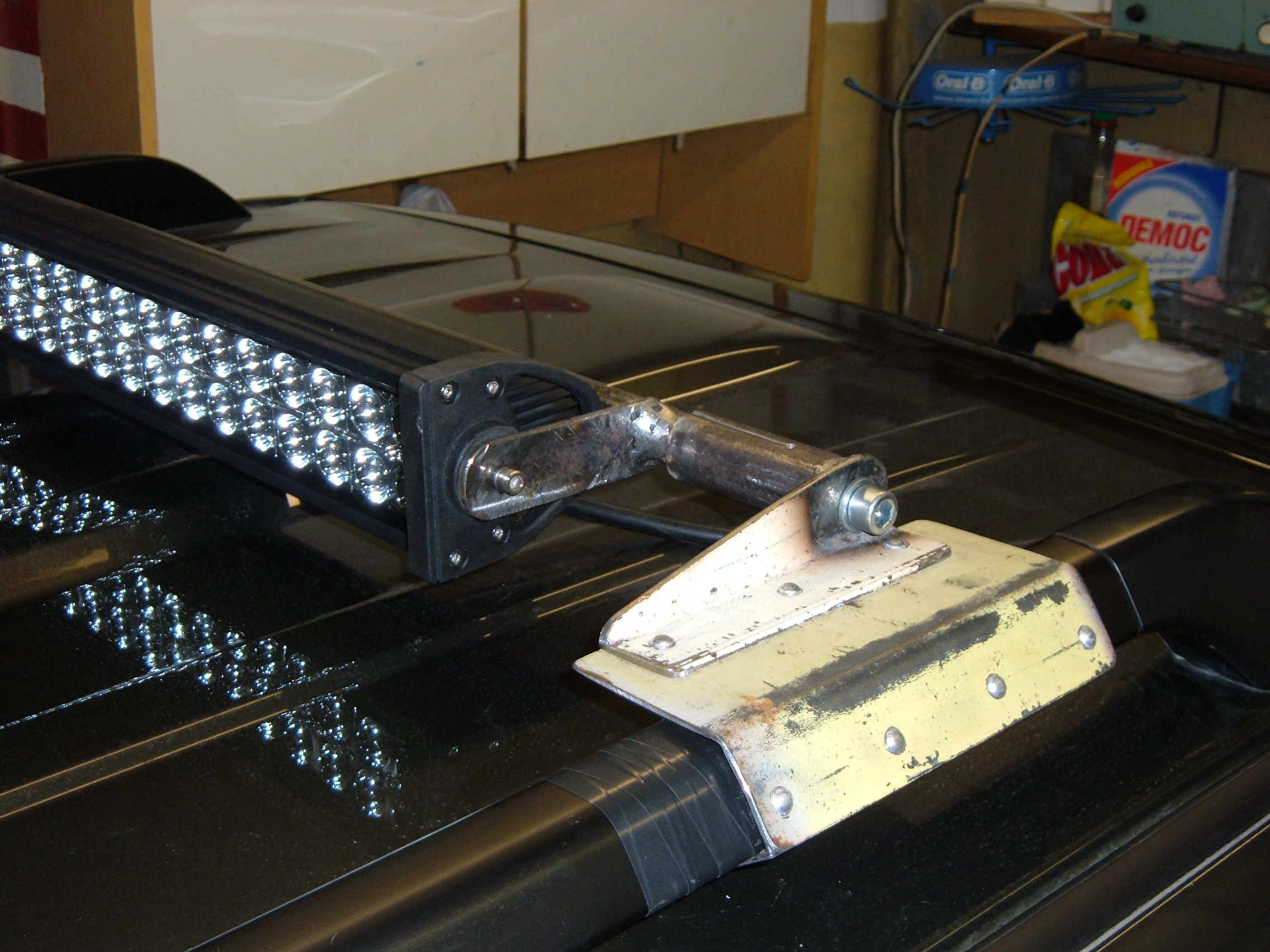 на счет эстетики может Вы и правы, но отдельно висящий на бампере или фаркопе фонарь также не украшает авто. . на счет мощности света -не знаю, может воткну туда более мощную полоску (*ведь пробуют даже дальний свет мастерить из светодиодов, хота те диоды гораздо крупнее и по габаритам в данное место не подойдут.) все одно гнужно задний свет в МПС модернизировать. я "рискнул" полуторами долларов за полоску. если будет удручающе - поставлю по бокам кожуха верхнего стопа маленькие квадратные фарки с обычными лампами. самое сложное в моей работе было провести проводку. а теперь нужно найти какие нибыдь фарки от велосипеда и прочее эстетически подходящие для установки их по бокам кожуха штатного стоп -сигнала. (понятно, что штатная фара заднего хода у меня работает , я ее не отключал)