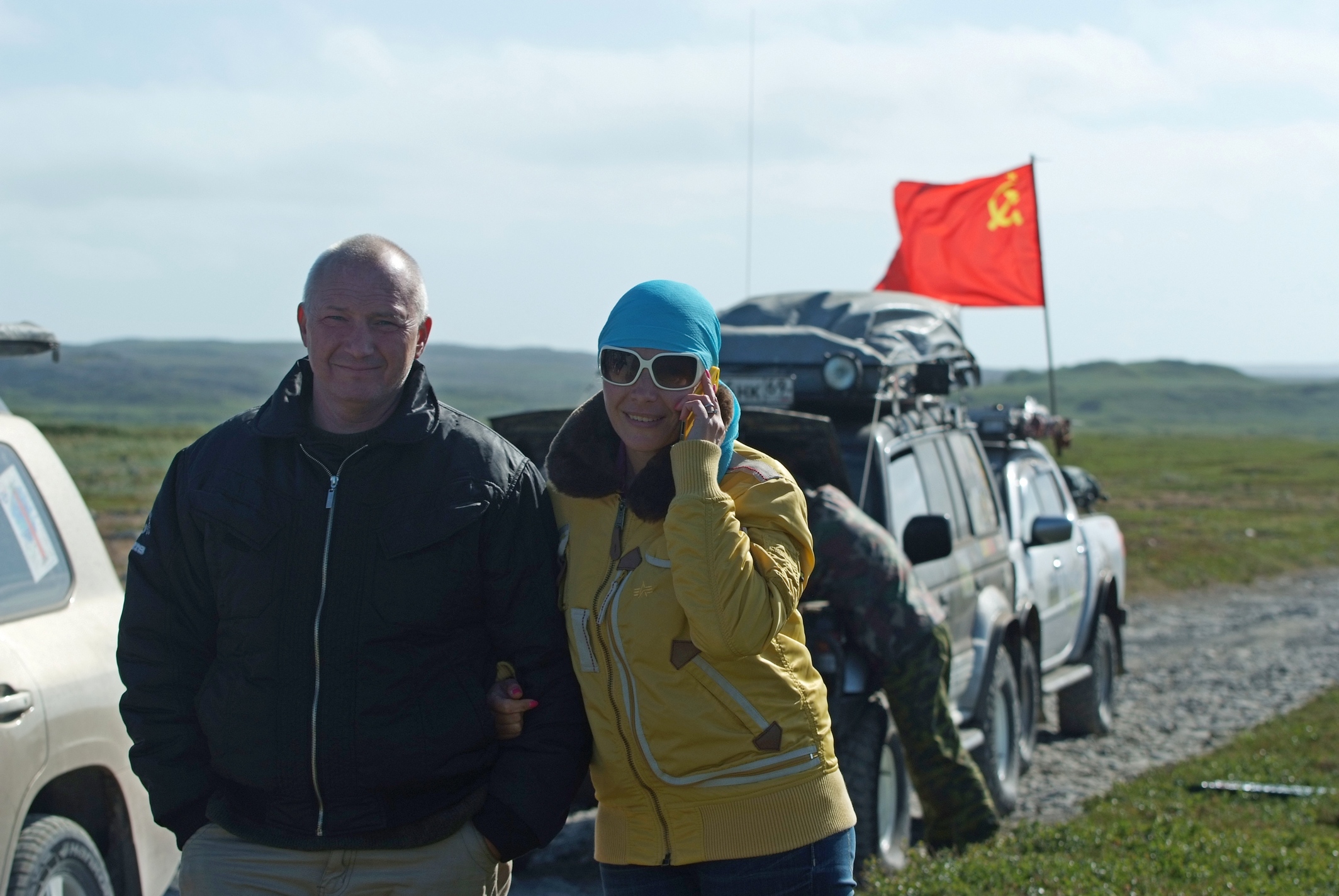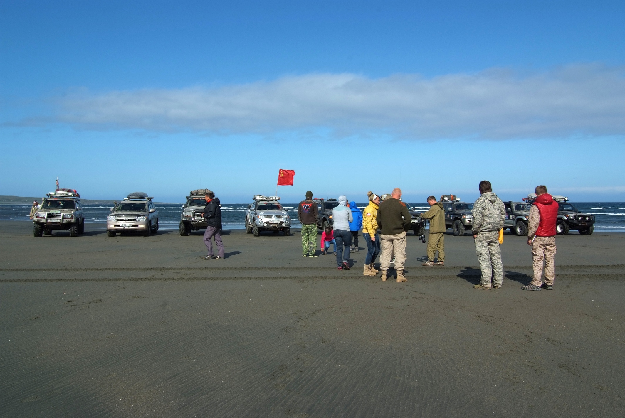 ну так то начиналось вообще все прилично... все дружно построились, фотографируемся... никаких неприличных мыслей пока не возникает.. пофотались да поехали дальше.. камушки, красота... и вот от всей этой красоты в какой то момент крышку и сорвало )))) все люди как люди... а я нормальный, в куртке, сапогах.. ну и не тока люди странно себя вели.. на машины то же подействовало..
