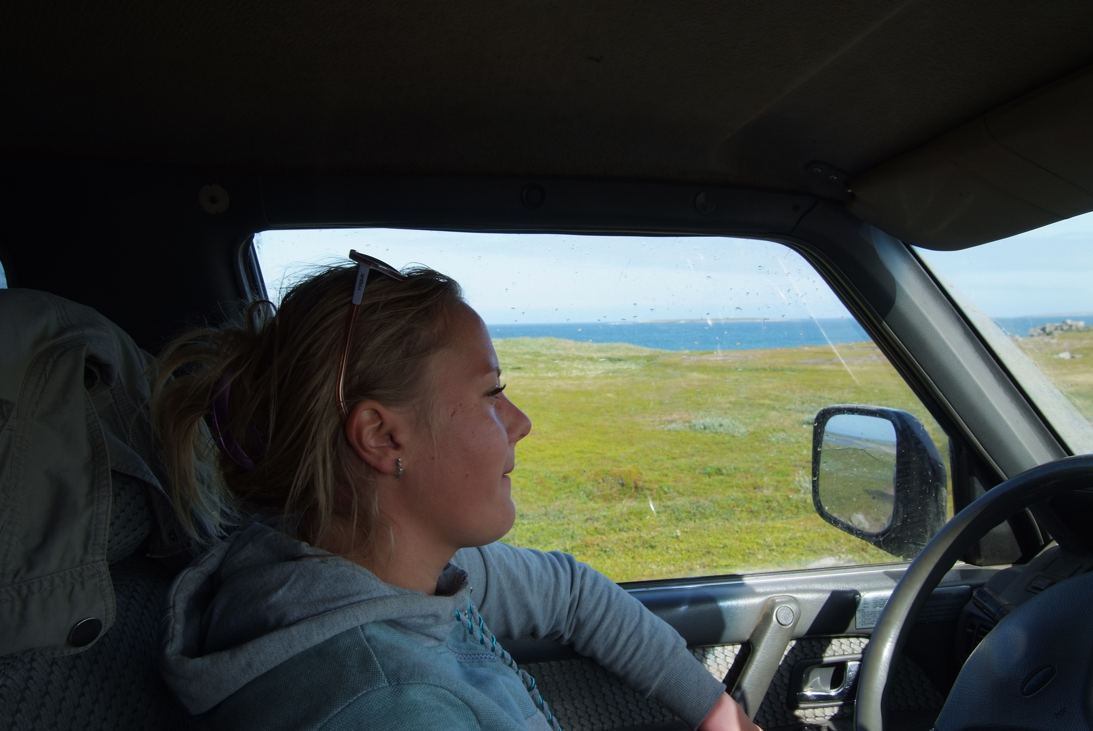 Пейзаж за окном все время разный.. то мох, то камни, то море на фоне одних и других..