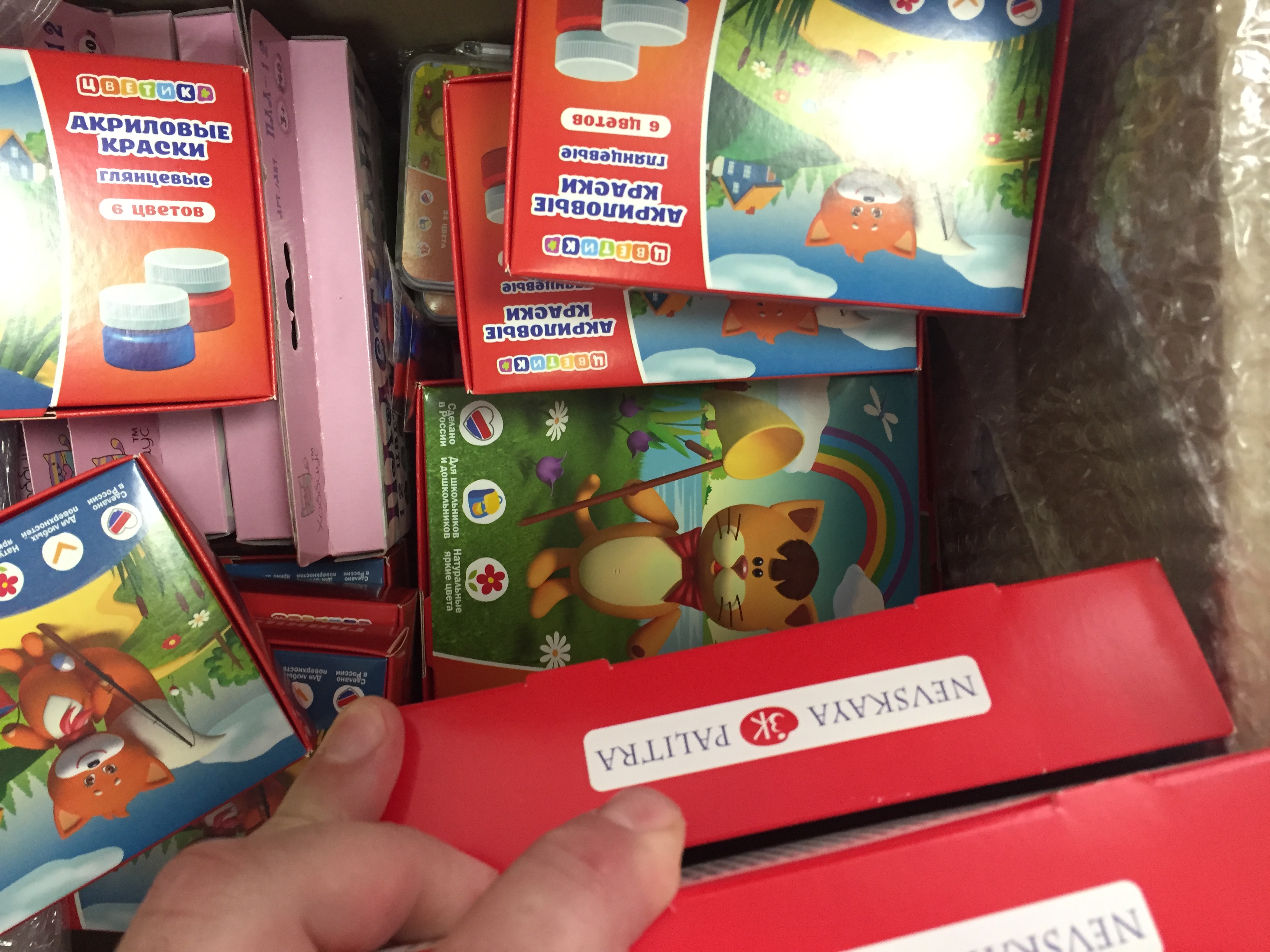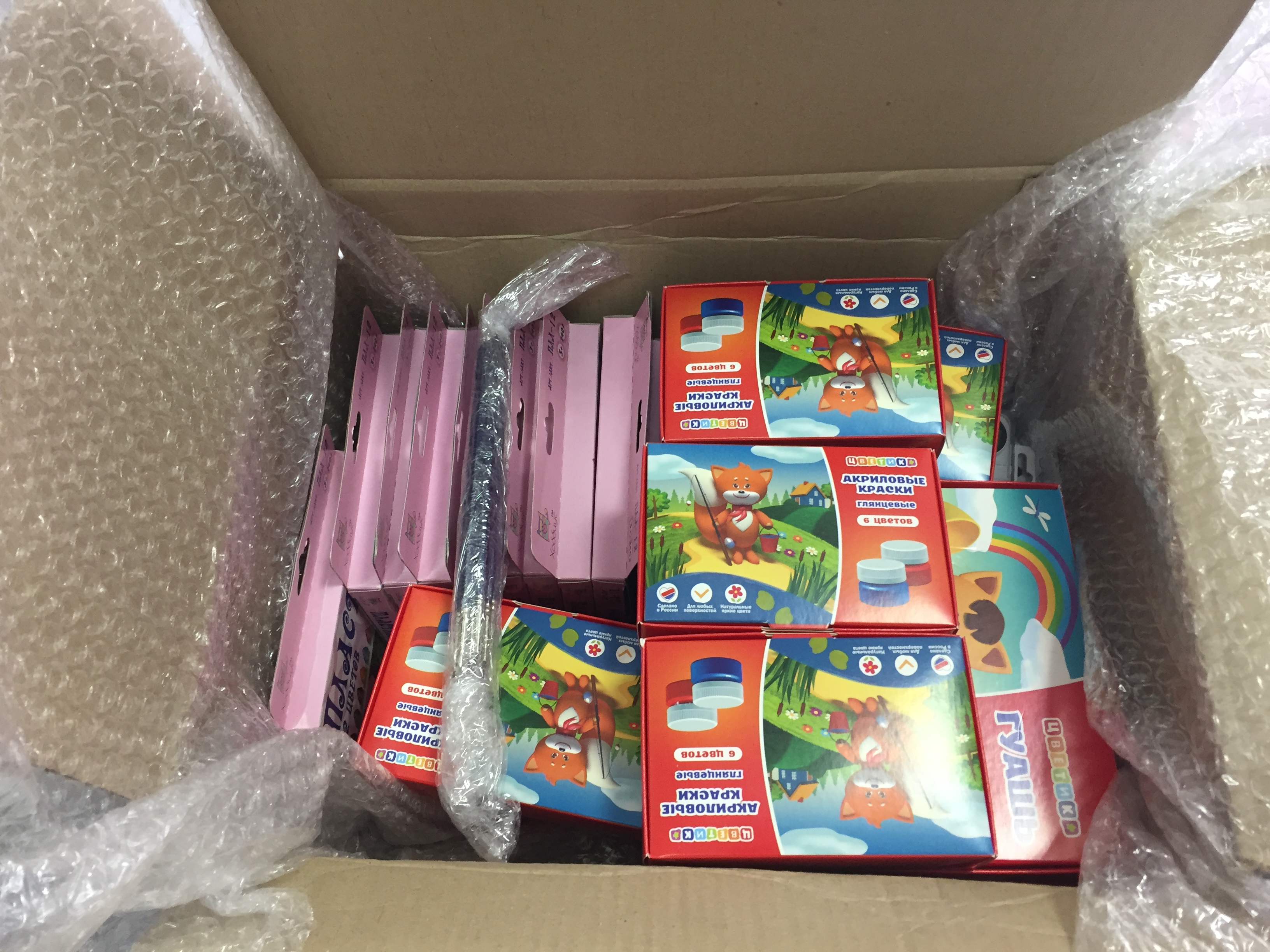 Краски, кисти, пластилин, холсты))))) Я ещё ватман с работы привезу)))) Короче малышне радость)))