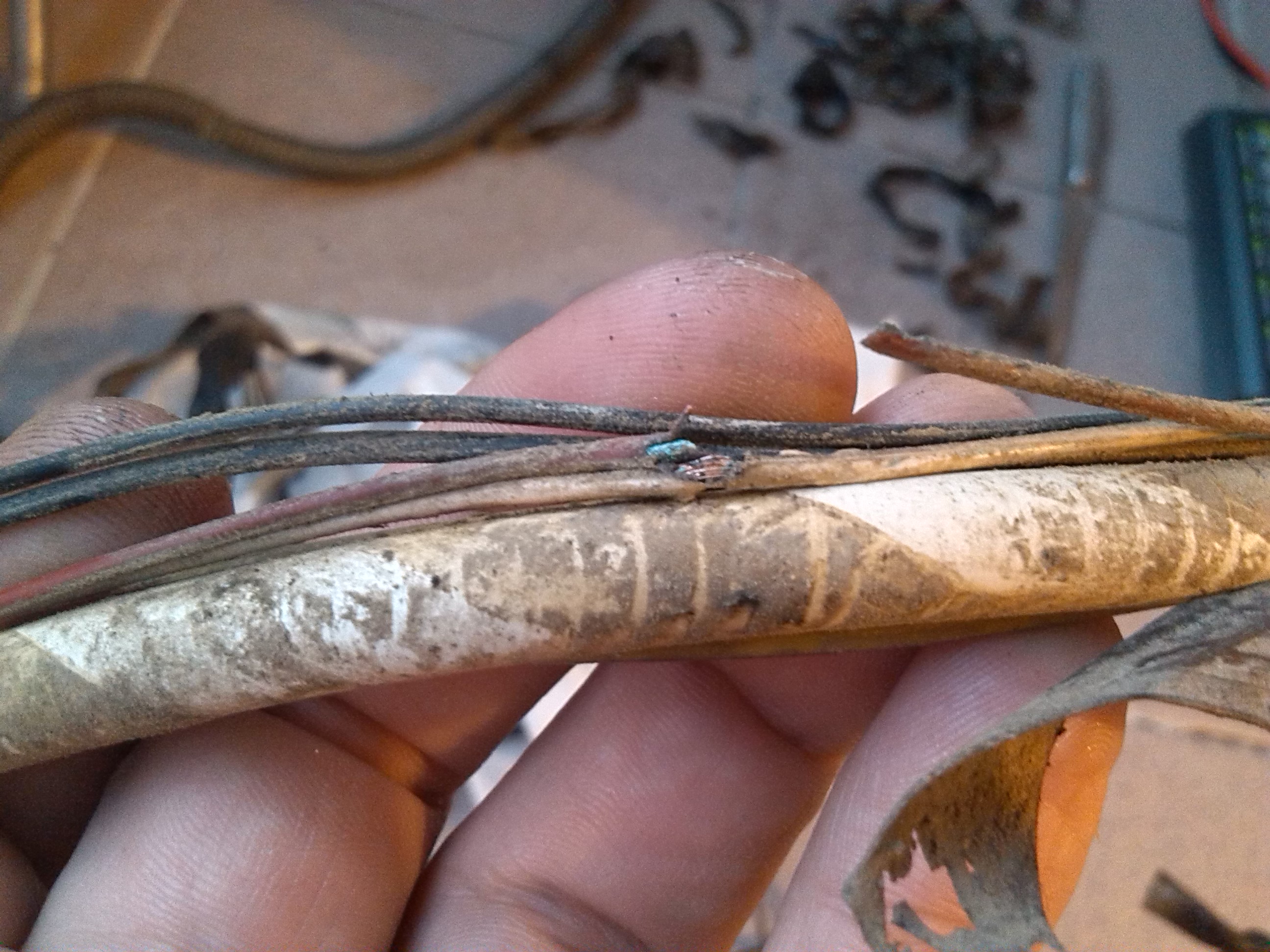 Вырезал поврежденные участки и заменял их хорошими проводами такого же сечения (0.5мм2). Т.к. мои провода существенно качественнее заводских, то слой изоляции в них тоже существенно толще.