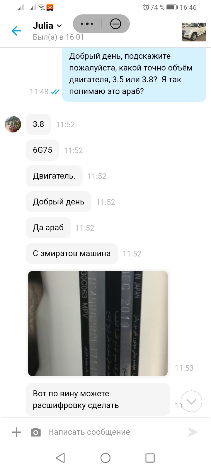 Ублюдок выставил неверный вин в объявлении, по которому все чисто, при осмотре выявилось что у машины крашен весь перед и отсутствуют все подушки по переду, коробка вся в масле, вин другой.