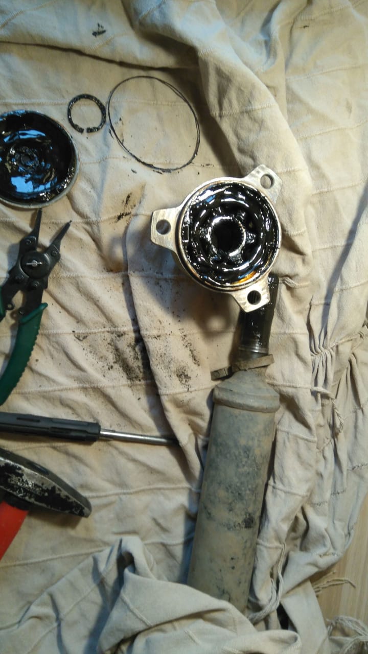 Примечательно, что деликовский шрус я минут 20 сбивал молотком со шлицов, а этот выпал сам. Шаг3