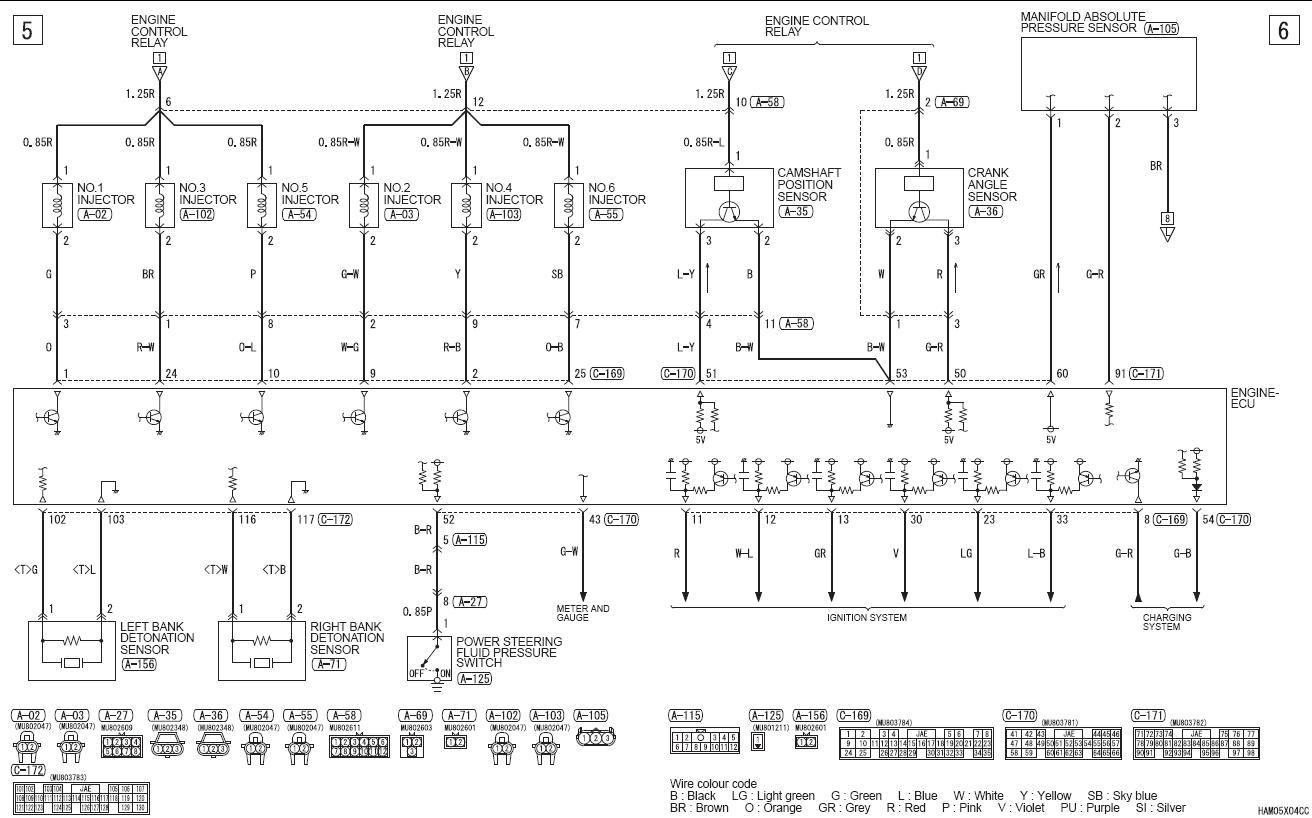 Можно брать оттуда. Можно непосредственно с инжекторов. Вот примерное их расположение. Разъёмы характерные (на схеме - А-02, 03, 54, 55, 102, 103) - их не спутаешь с другими. Цвет проводов выше.