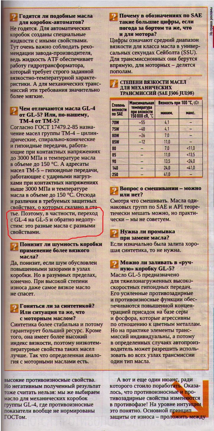Ваше откровение о том что GL-4 и GL-5 - масла разного назначения, несколькими постами ранее вообще вызвало улыбку.
