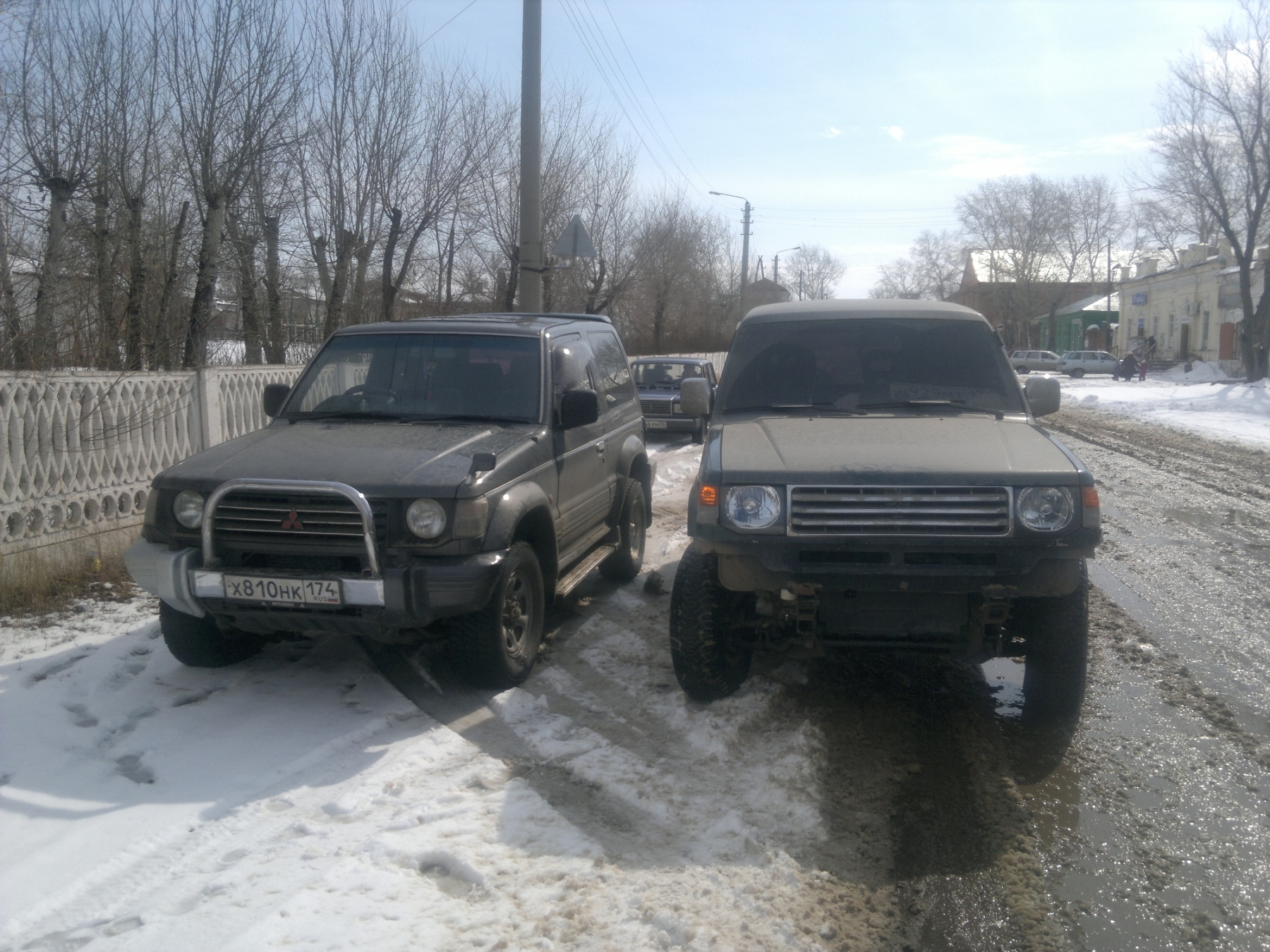 Сегодня сфотался рядом со стоковым коротышом (4D56). Разница маленько есть. У обоих колеса 235/75-15.