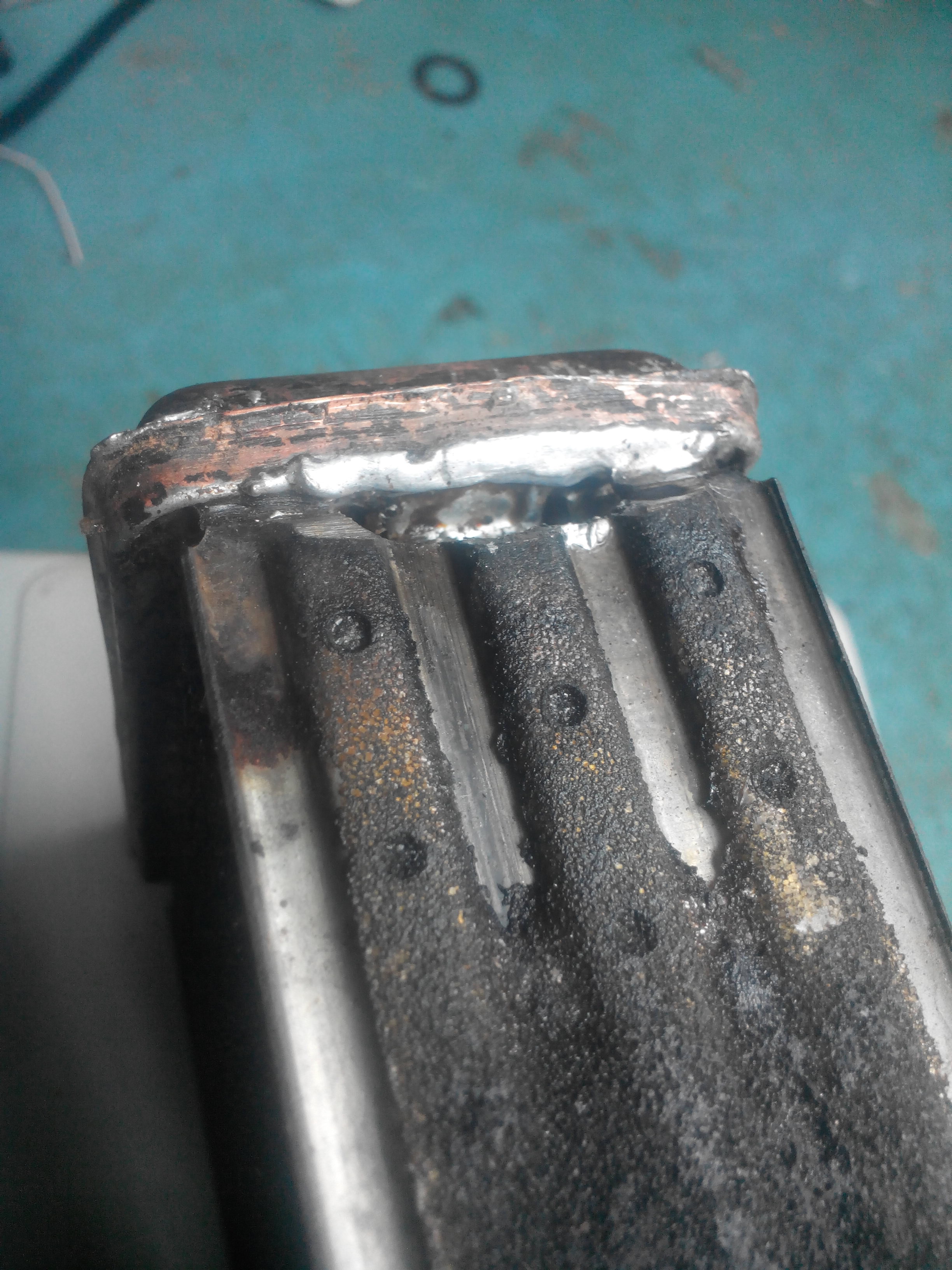 Сгнили трубки походу сами от времени,на вид как моль побила,возле них были следы ( рыхлые наплывы) тогда просто не придал значения,т.к. течи как таковой не было. Шомполом отполированный,края закруглены,мог боковины трубки изуродовать ,но не плоскость,тогда уж все подряд изуродовал бы. Да и по всей длине.