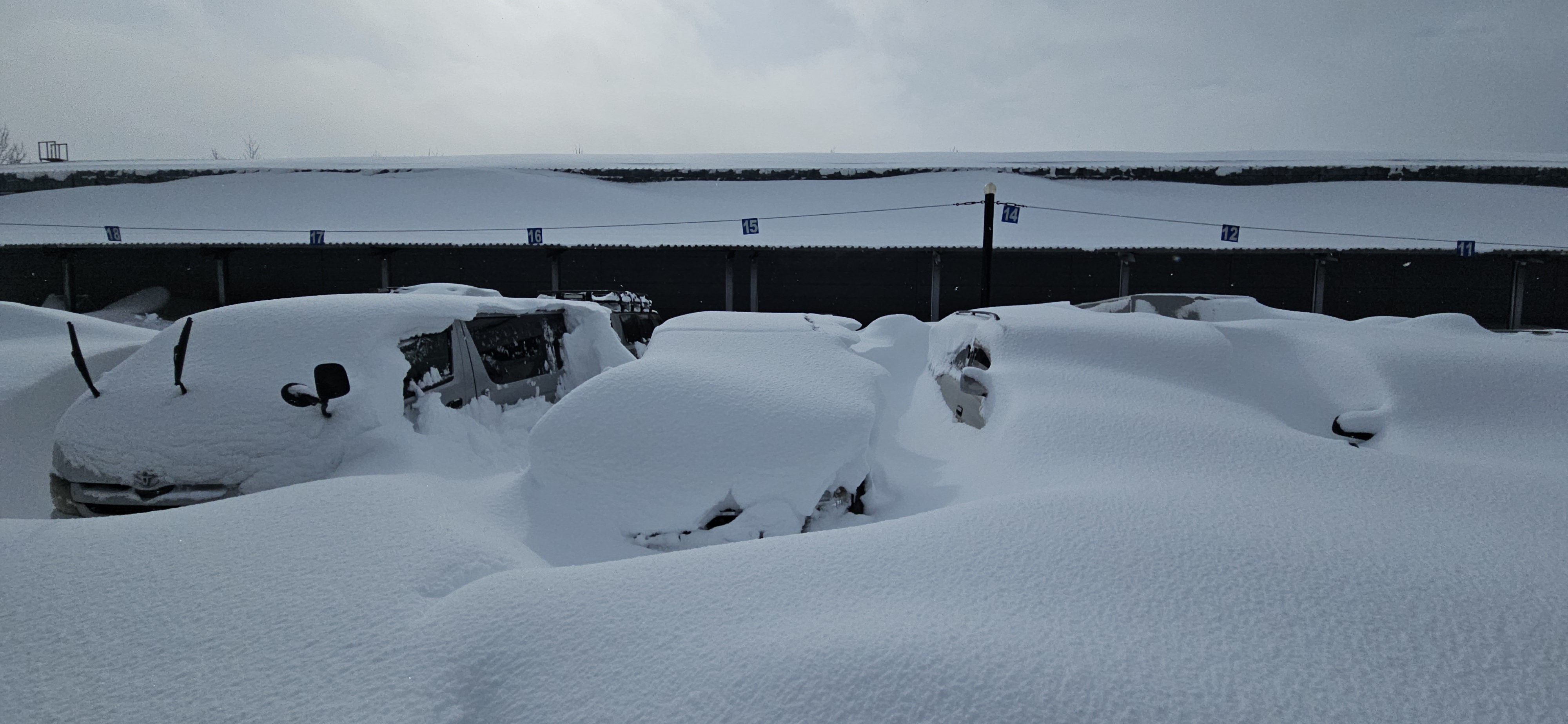Теперь понятно зачем дворники поднимают - чтобы быстрее свою машину по торчащим из под снега найти