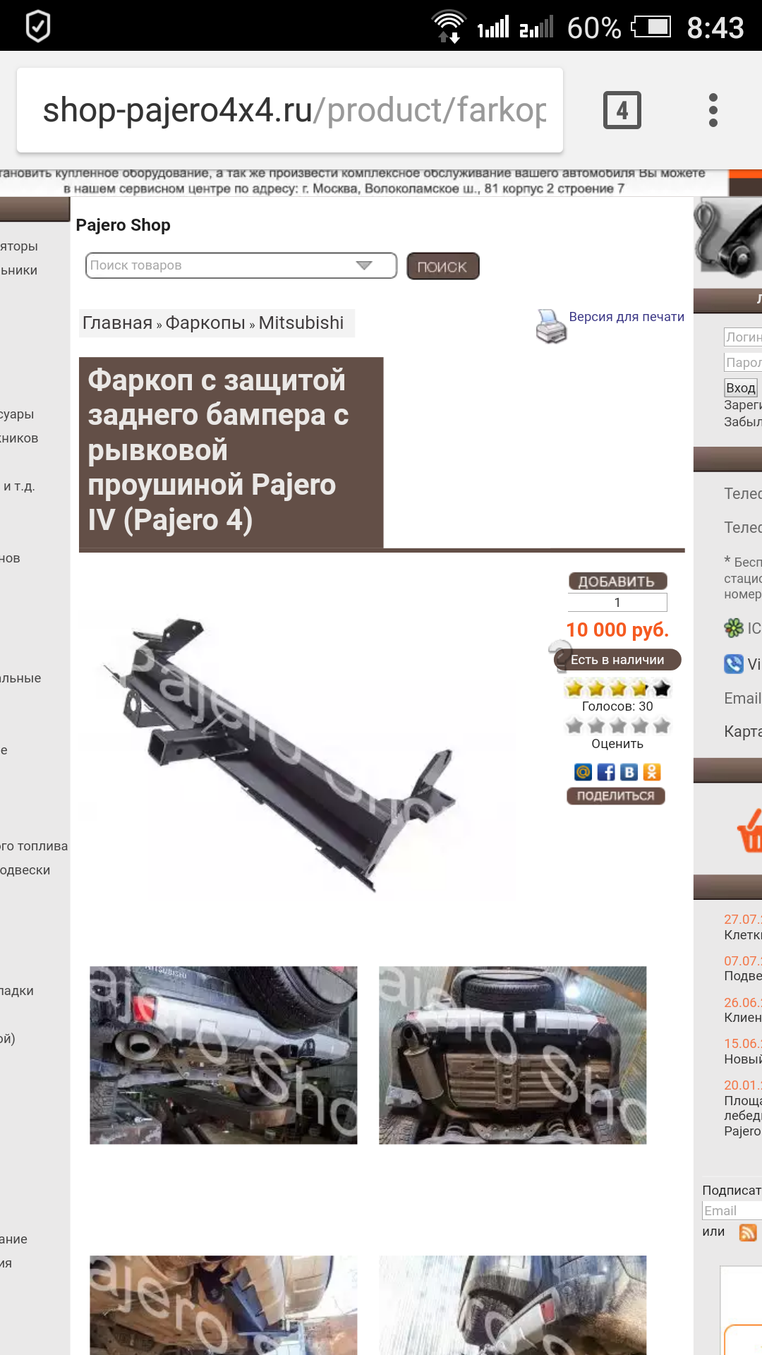 Сейчас тоже ничего http://shop.farkop-spb.ru/index.php?aja ... %F1%F2.%29m724 писал(а):В былые времена на Паджеро 4 ставил фаркоп "Лидер" , цена была вкусная , 7500 руб.