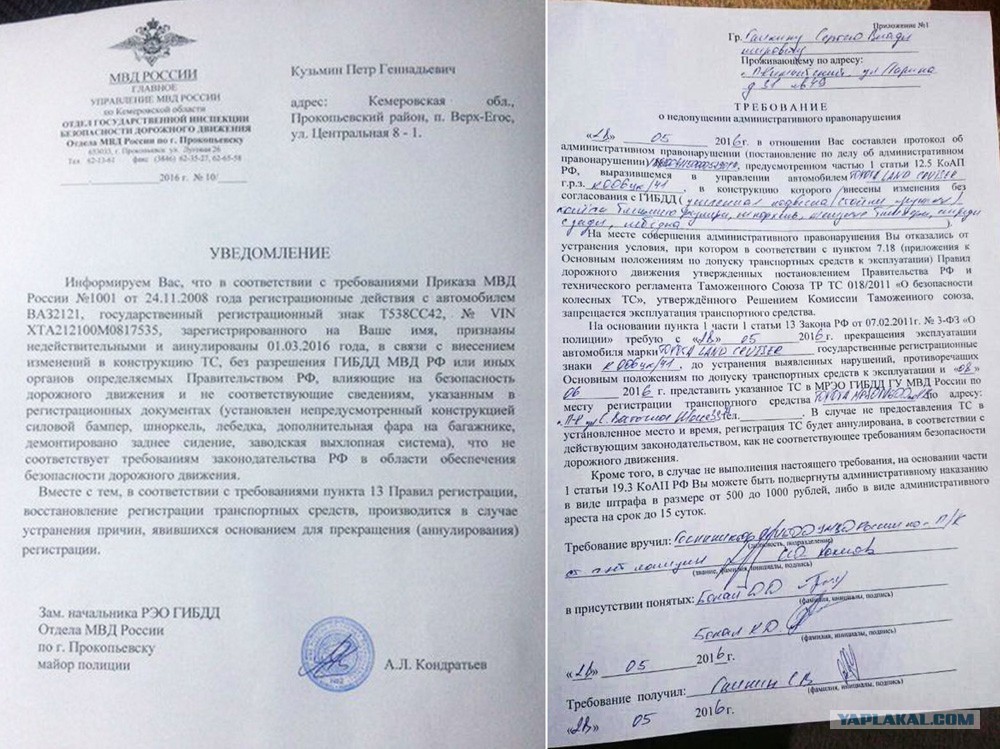 Сегодня утром в новостях, по моему по РЕН-ТВ, услышал ошаламляющую новость. Вроде как вступил в силу закон о несоответствии автомобиля, указанным паспортным, техническим характеристикам. Ну или что то похожее. Сама суть в том, что все автомобили у которых произошли технические изменения типа лифтовки, установки силовых бамперов, колёс не установленного размера, дополнительного оборудования типа: люстр, лестниц, калиток и т.п. и т.д. будут признаны инспекторами ДПС нарушителями и подлежать штрафованию и лишению прав на 1,5 года. Инспектор остановив автомобиль в таком виде, составляет протокол, фиксирует все нарушения на фото или видео и в суд по стандартной схеме, а ты уже доказывай что не верблюд. Как то так вроде.