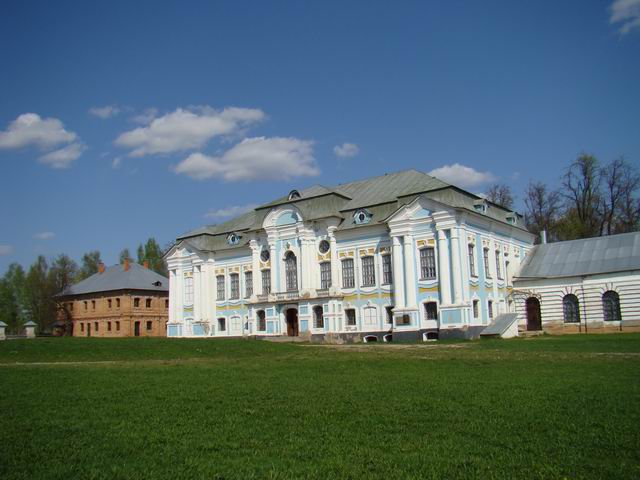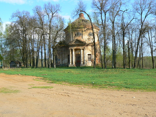Проезд: По шоссе Вязьма-Зубцов до перекрестка на Новодугино, повернуть в противоположную сторону, через 2 км за мостом СРАЗУ налево, еще через 2 км налево в гору в село, указателей НЕТ, названия села также НЕТ, примета - после въезда в село сразу справа в глубине парка правый флигель усадьбы, за вторым флигелем направо к церкви.Координаты: 55.605821,34.173052