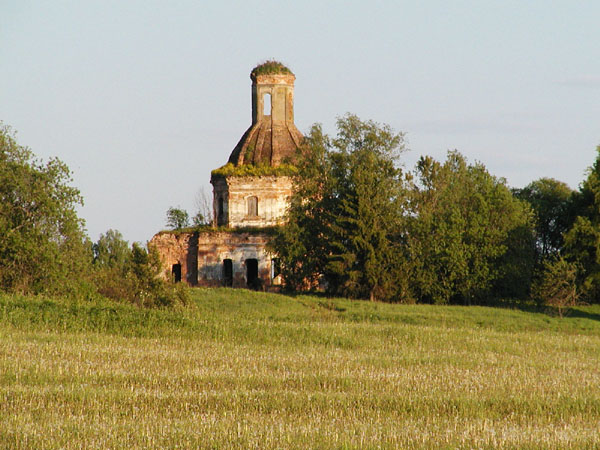 К высокому круглому объему храма с полукруглой апсидой, завершенному куполом и главкой, раньше примыкала трапезная.