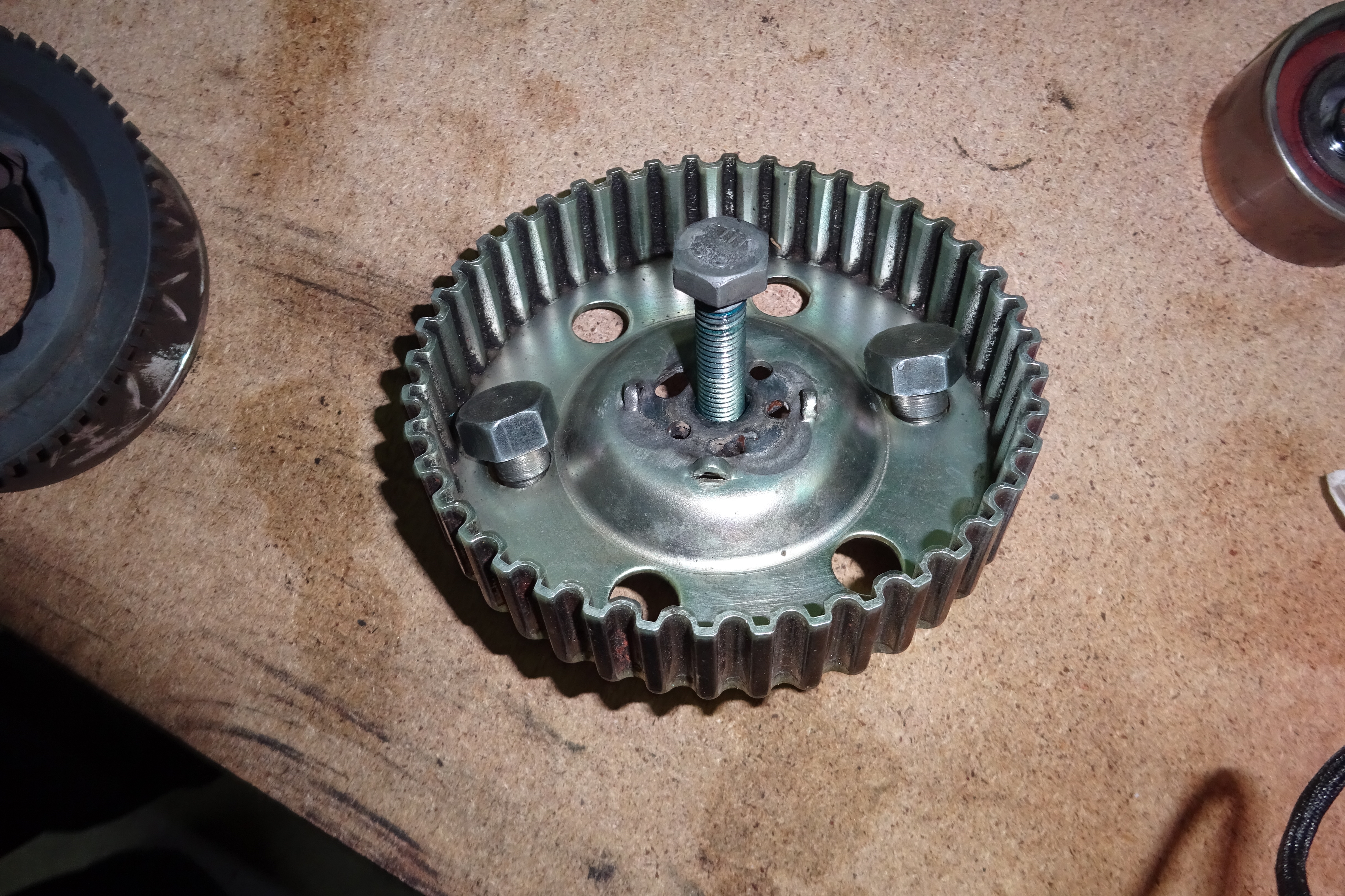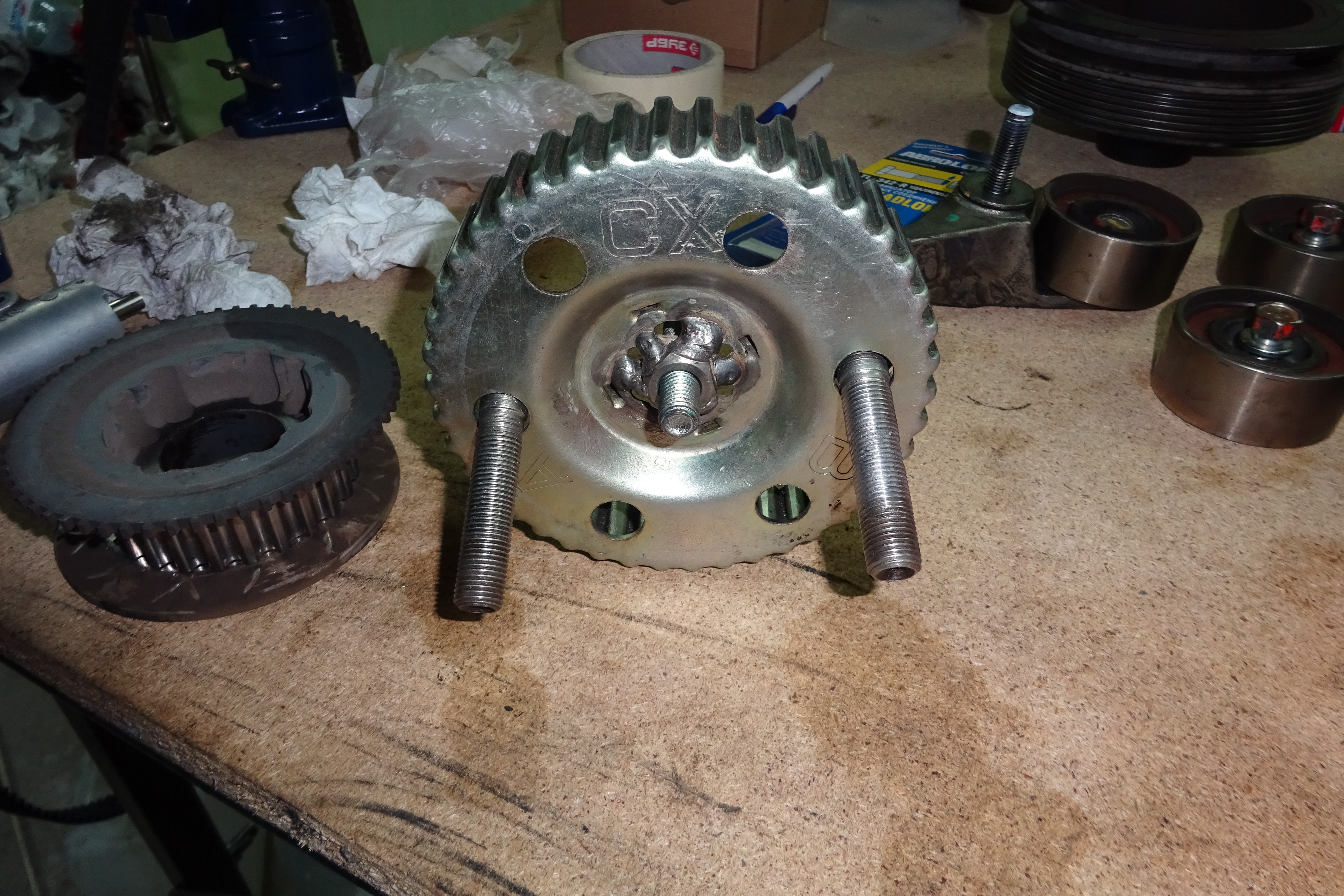 3. Фотай все при разборе. Много мелких кранштейников и куча проводов и трубок. Хрен запомнишь что куда. Я думаю не стоит предупреждать, но на всякий случай напомню, что без ремня ГРМ коленвал лучше не крутиь. Да еще сделал фиксатор для звездочки распреда, крючок, который поджимался болтом в отверстие для крепления крышки ГРМ. Так легче натягивать ремень ГРМ или можно воспользоваться лайфхаком - разрезать по вдоль пол ширины ремня, надеть новый, а старый потом отрезать и новый натянуть до конца.